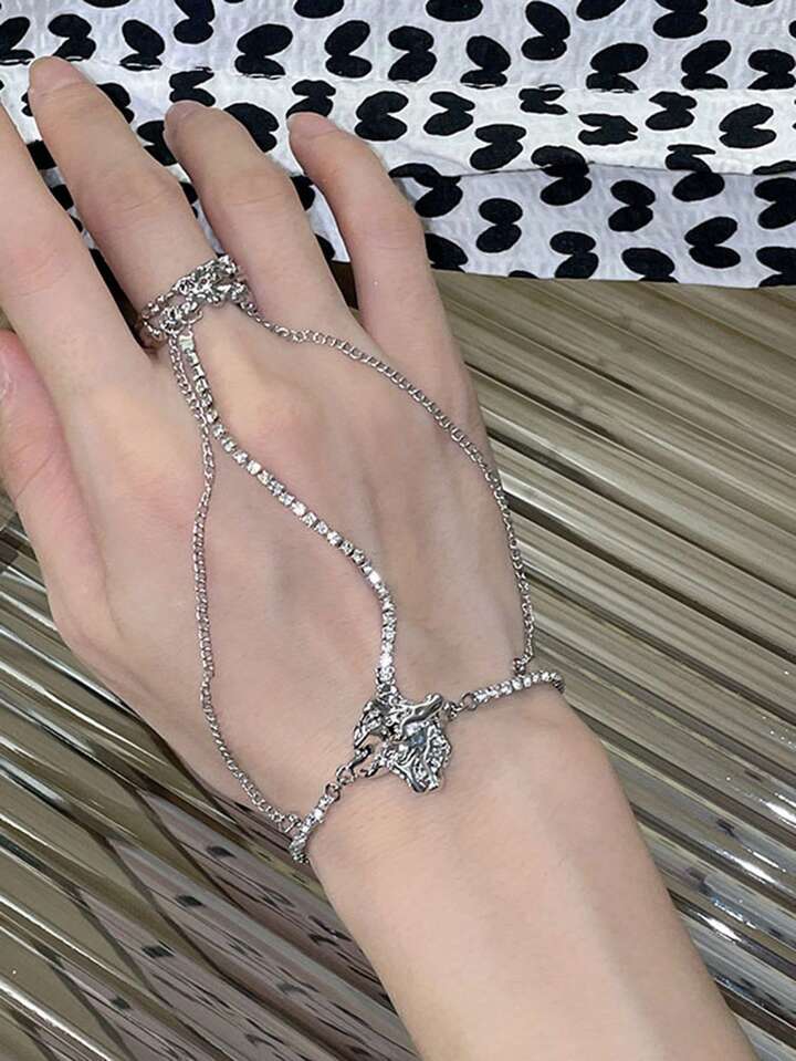 Goth 1pc Fashion Iron Alloy Rhinestone Decor Chain Bracelet For Women For Daily Decoration