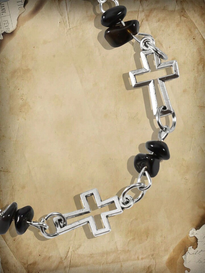 Goth 1pc Fashion Stone & Cross Decor Bracelet For Women For Daily Decoration