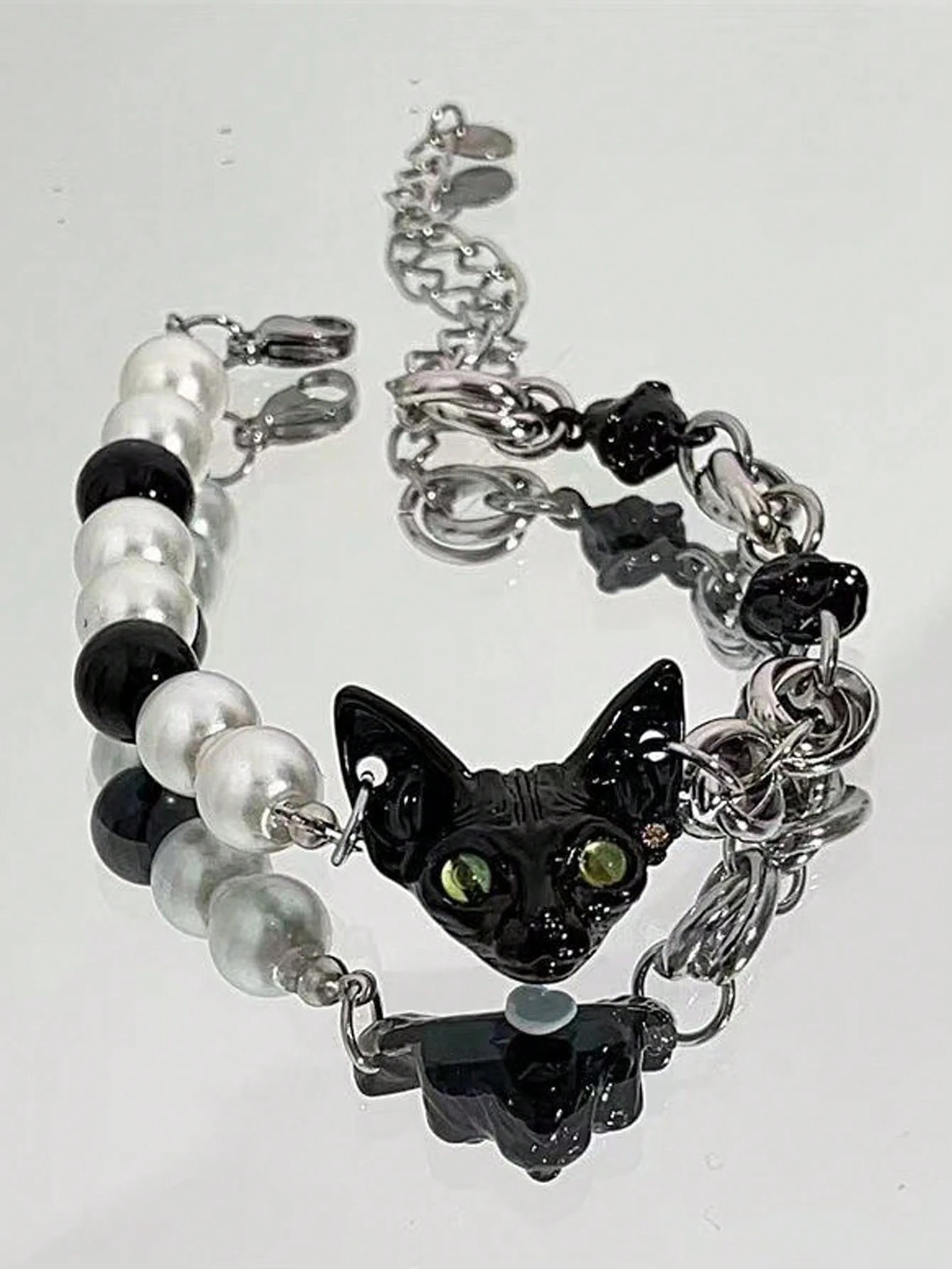Goth 1pc Fashion Zinc Alloy Cat Decor Bracelet For Women For Daily Decoration