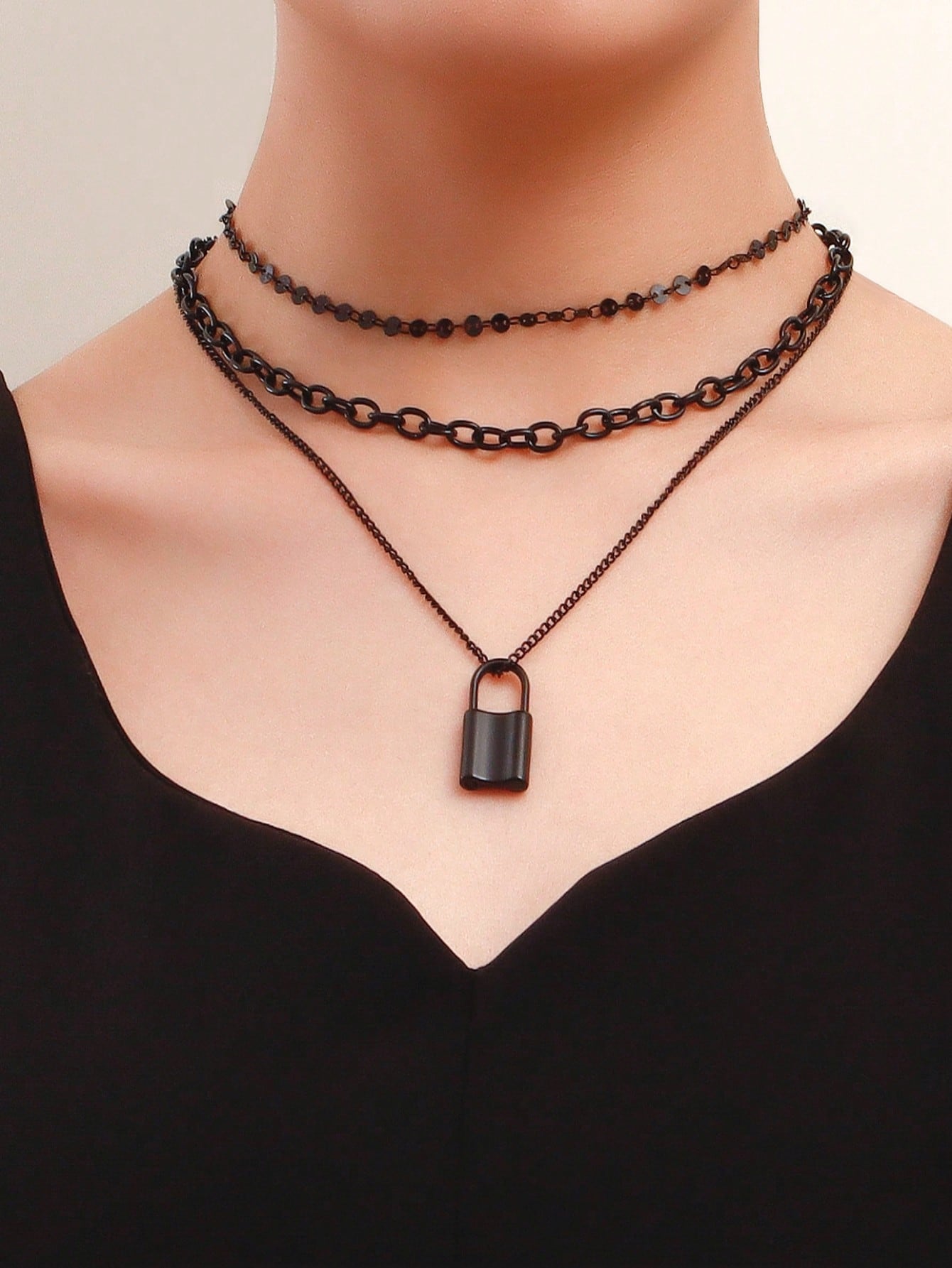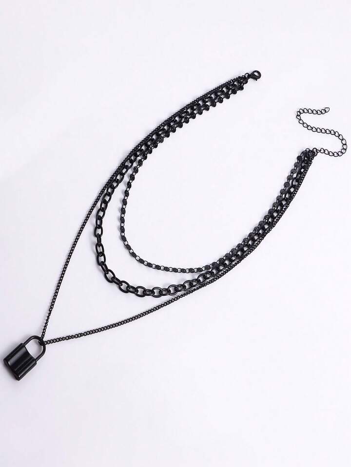 Goth 1pc Fashion Zinc Alloy Lock Charm Layered Necklace For Women For Daily Decoration