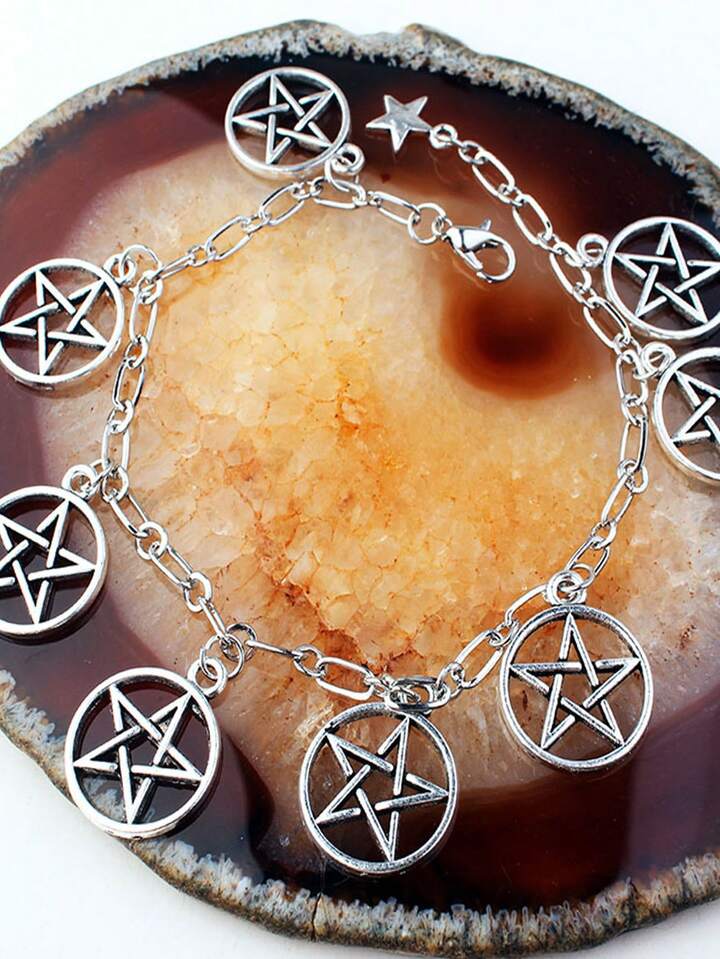 Goth 1pc Fashion Zinc Alloy Star & Round Charm Bracelet For Women For Daily Decoration