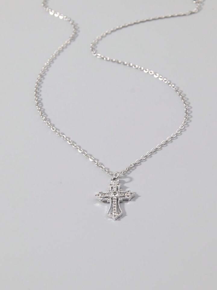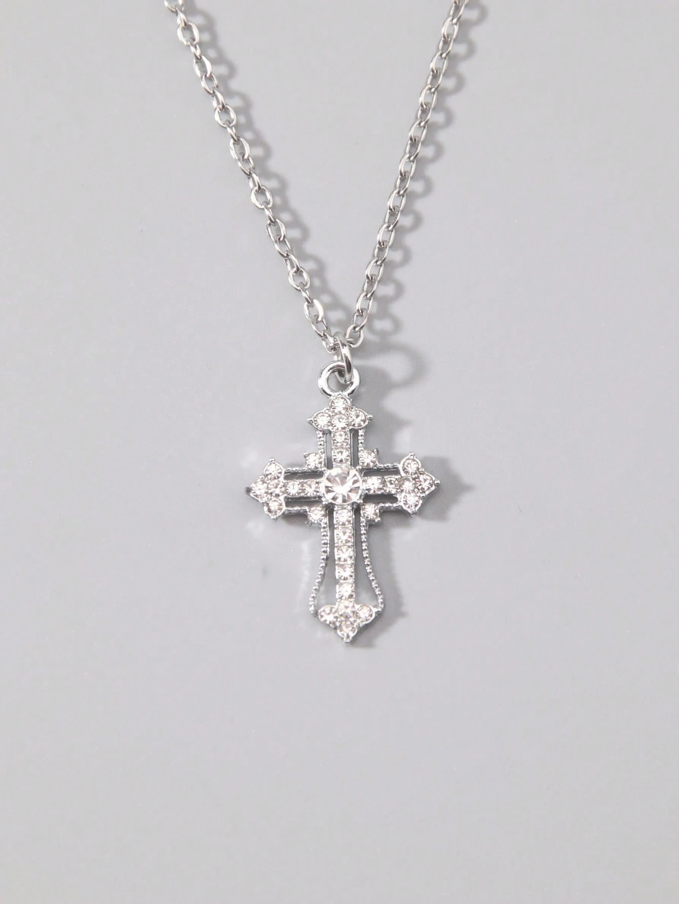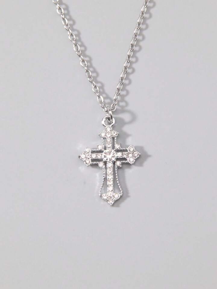 Goth 1pc Fashionable Elegant Rhinestone Cross Pendant Necklace
