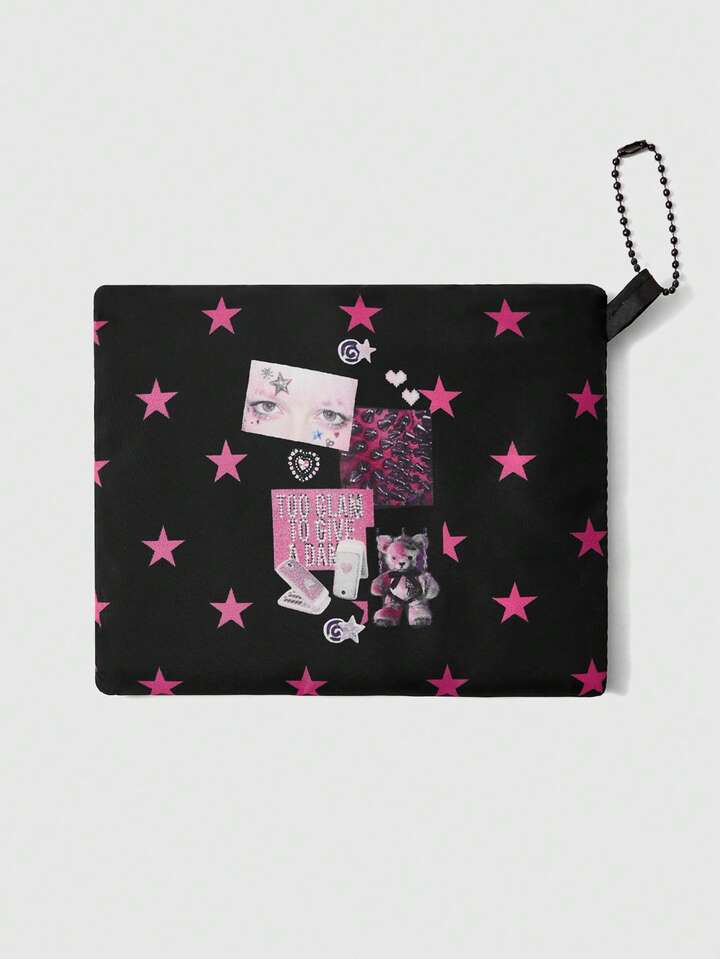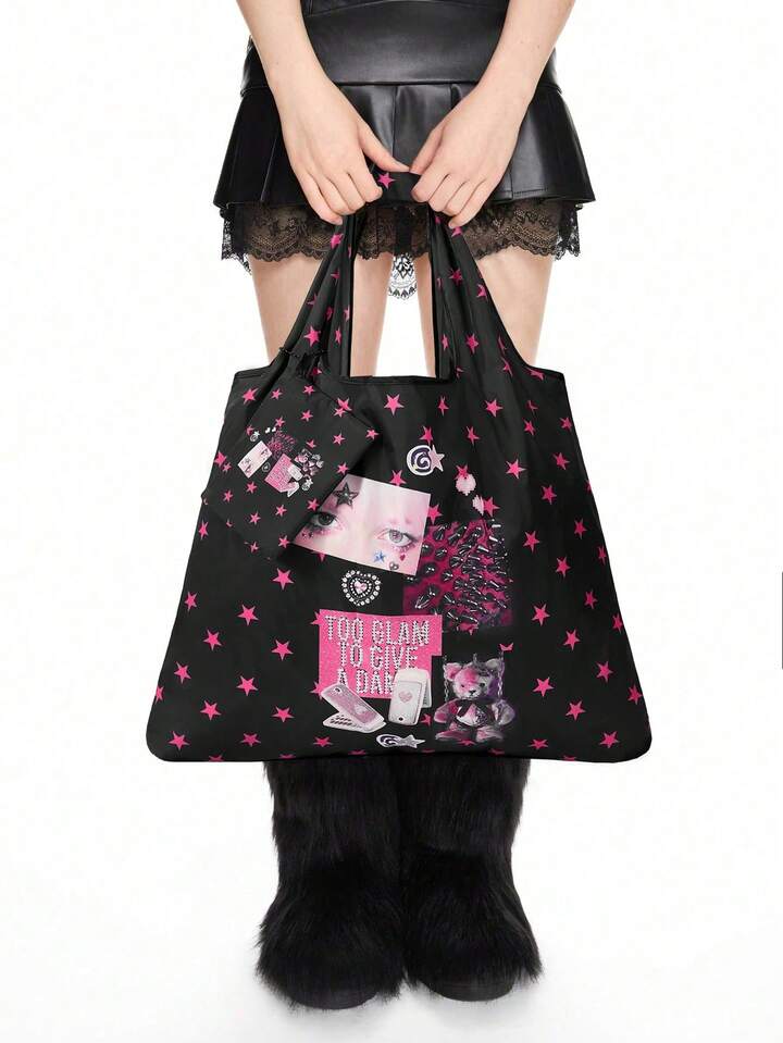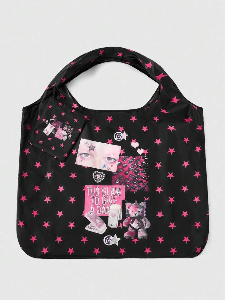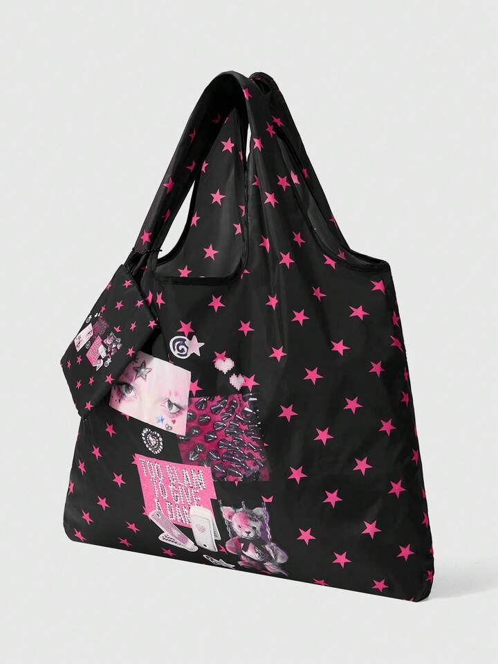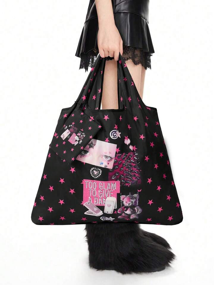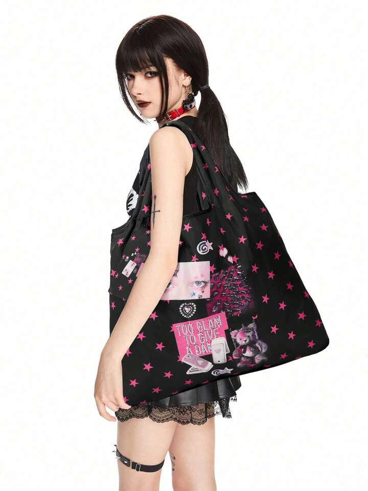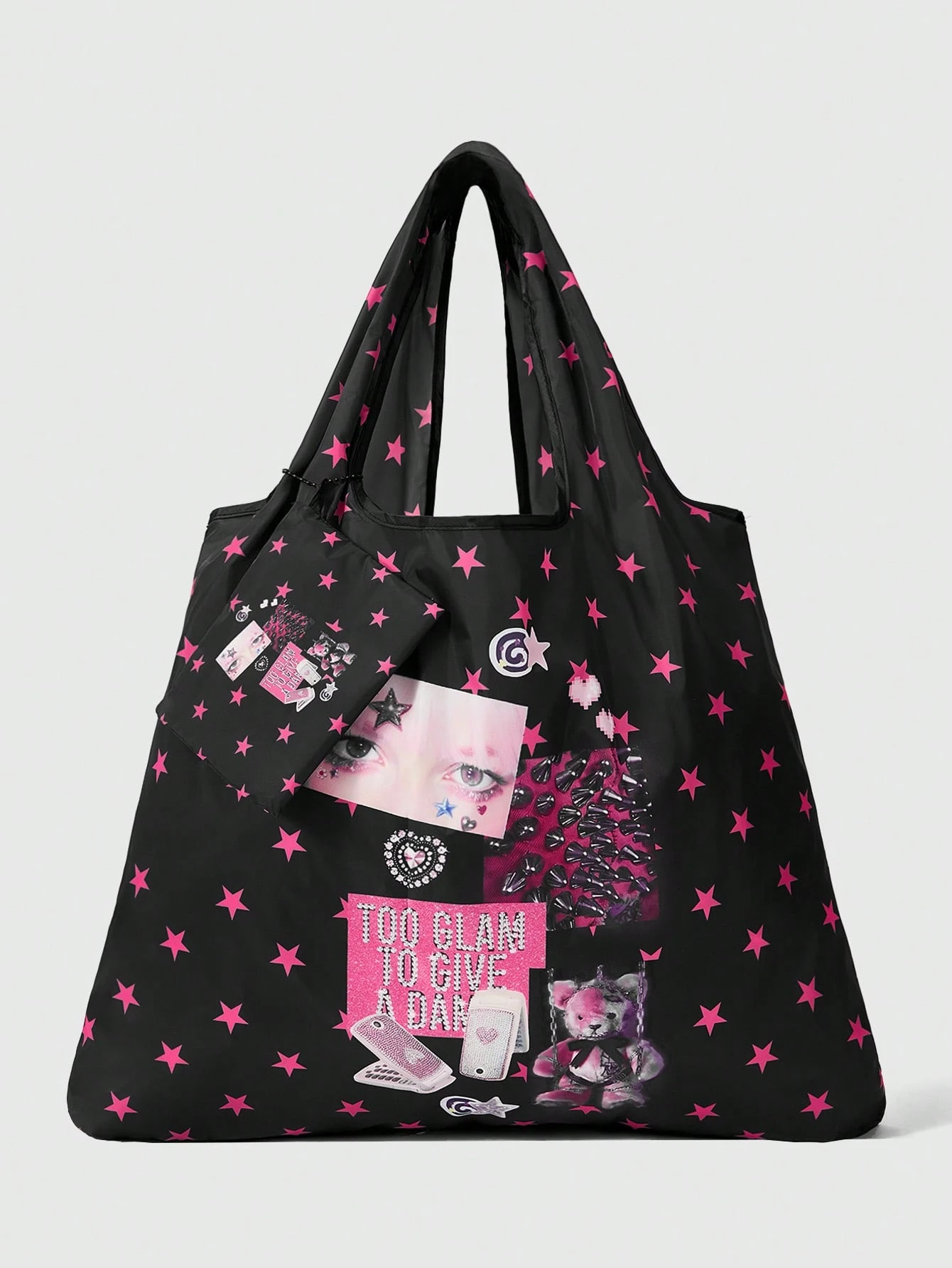 Goth 1pc Fashionable Eye-Shaped Celestial Motif Storage Pouch, Large Capacity Foldable Tote Bag With Coin Purse
