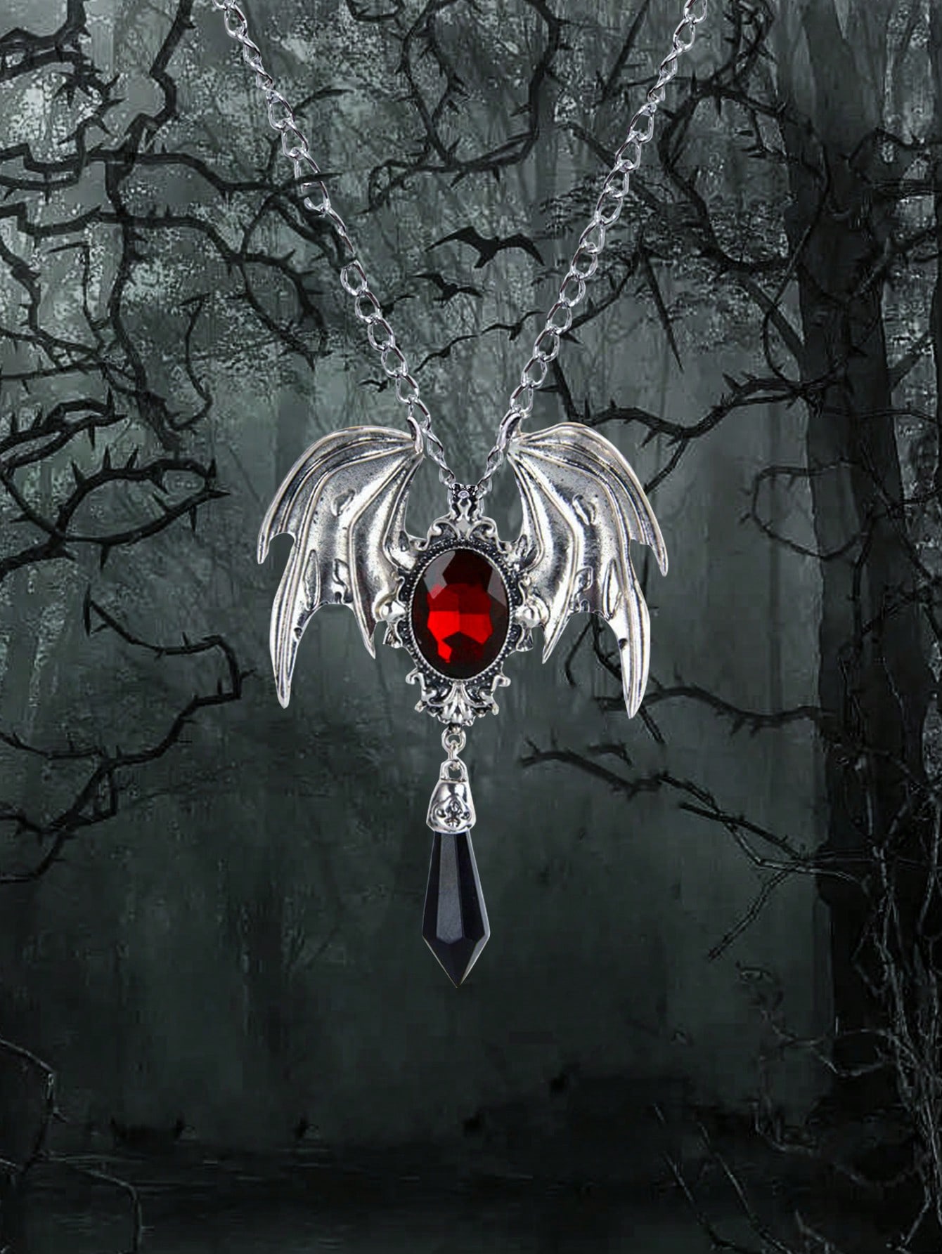Goth 1pc Fashionable Zinc Alloy Wing & Rhinestone Decor Geometric Pendant Necklace For Women For Daily Decoration