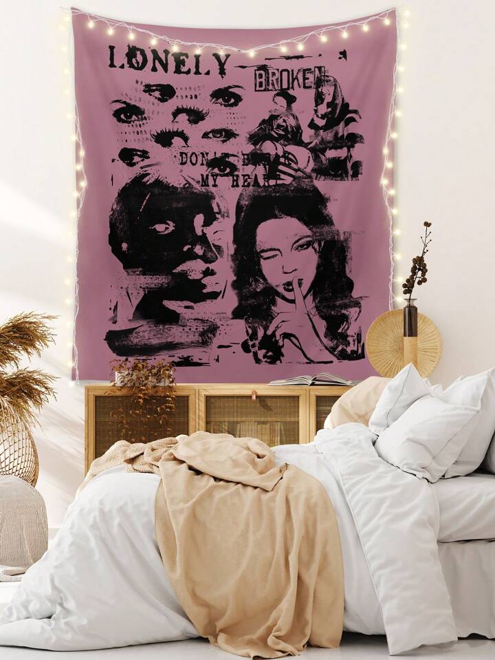 Goth 1pc Figure & Letter Graphic Tapestry,Cute Washable Tapestry Poster Wall Hanging For Bedroom Aesthetic