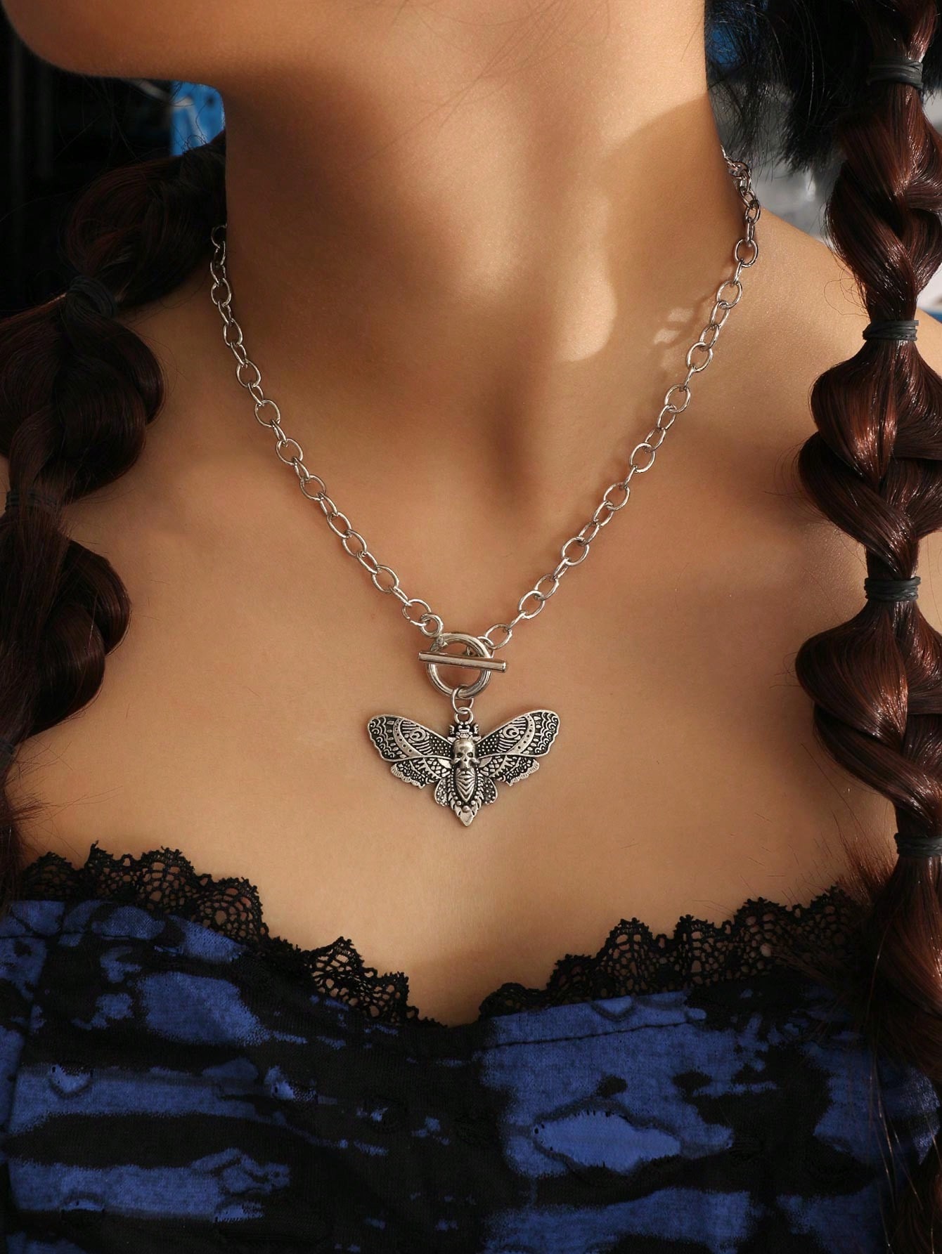 Goth 1pc Funky Zinc Alloy Butterfly & Skull Charm Necklace For Women For Daily Decoration