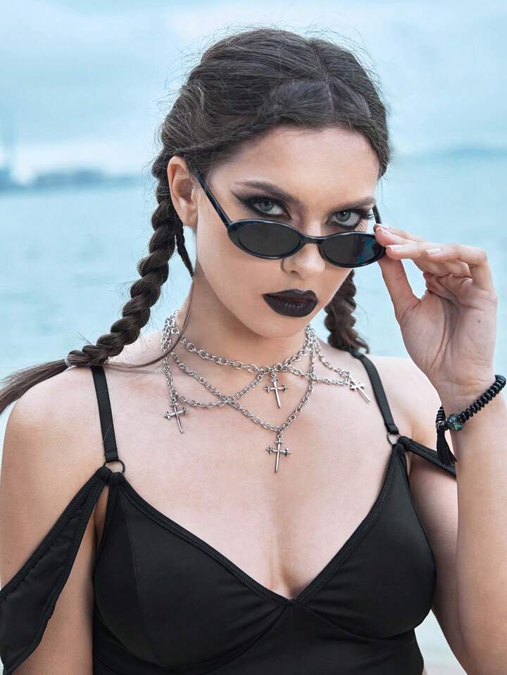 Goth 1pc Funky Zinc Alloy Cross Charm Layered Choker For Women For Daily Decoration