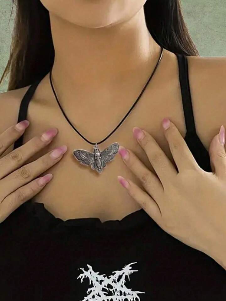 Goth 1pc Funky Zinc Alloy Skull & Butterfly Charm Necklace For Women For Daily Decoration