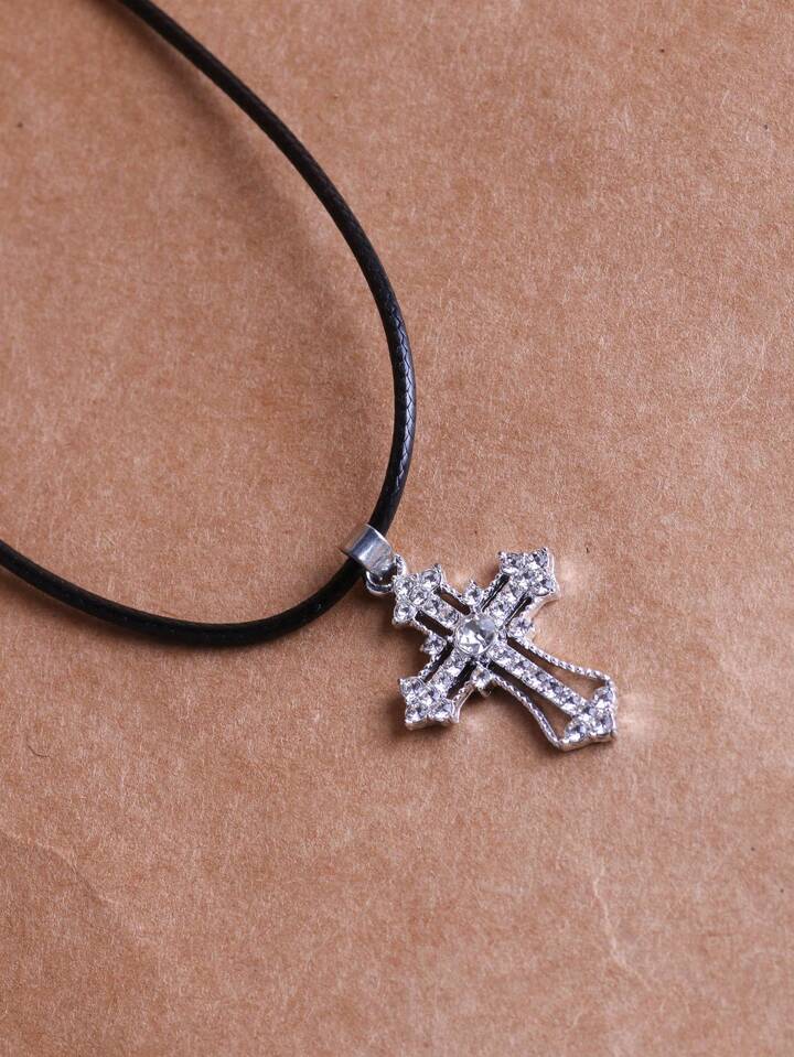 Goth 1pc Glamorous Zinc Alloy Cross Charm Rhinestone Decor Necklace For Women For Dating Gift