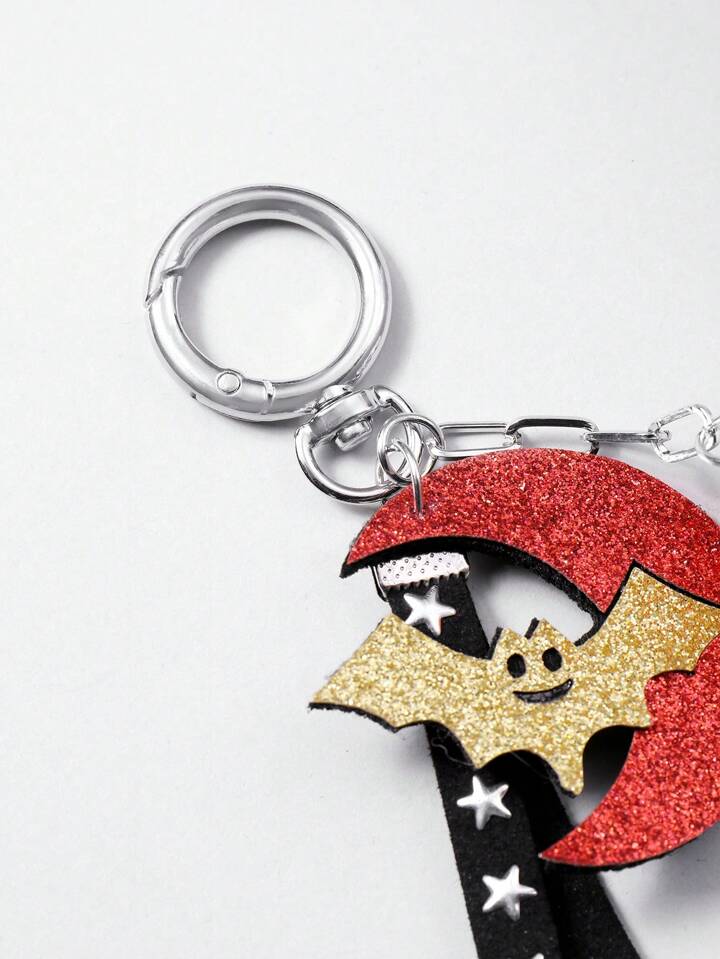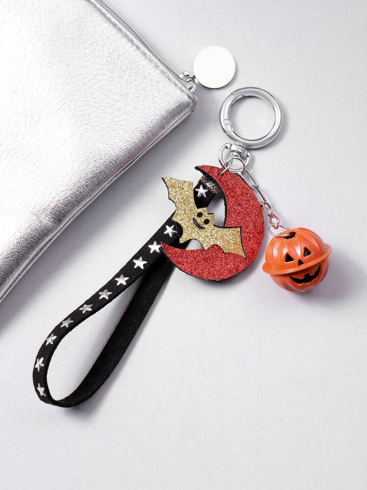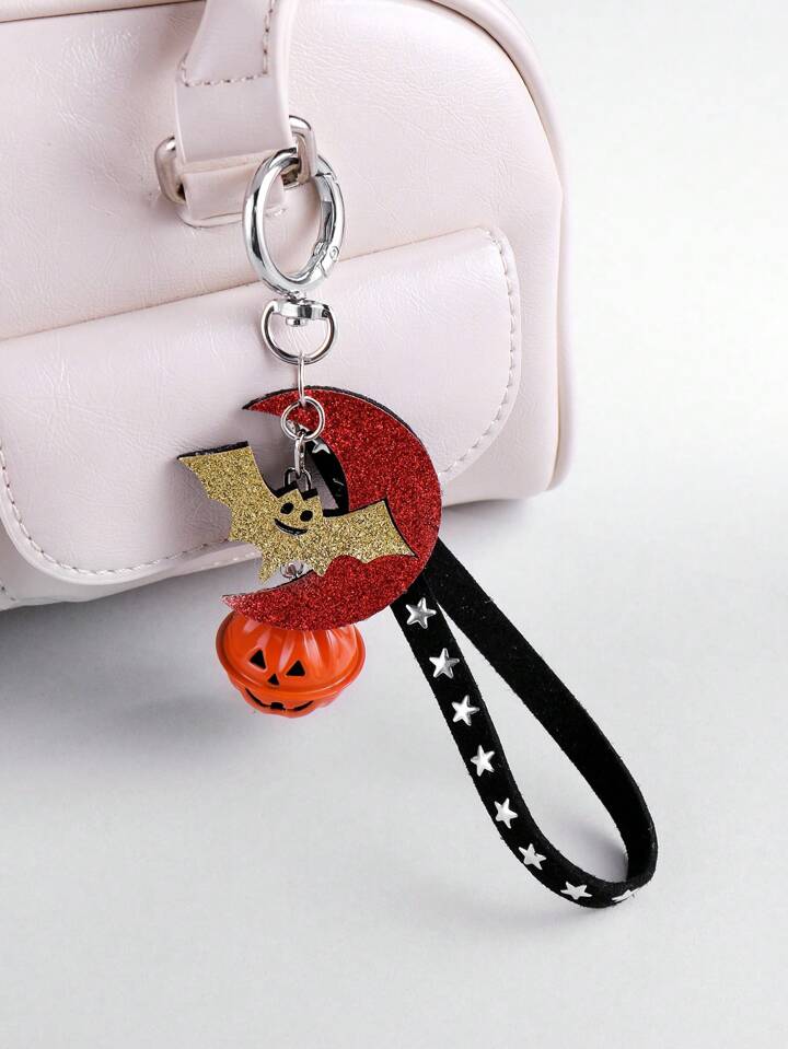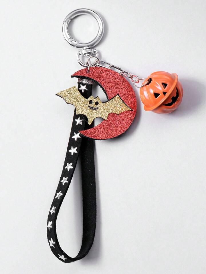 Goth 1pc INS Style Fashion Versatile Halloween Series Silver Chain Pumpkin Skull Small Bell Red Glitter Crescent Moon Bat Black Star Pendant Keychain, Suitable For Daily Wear And Holiday Gift