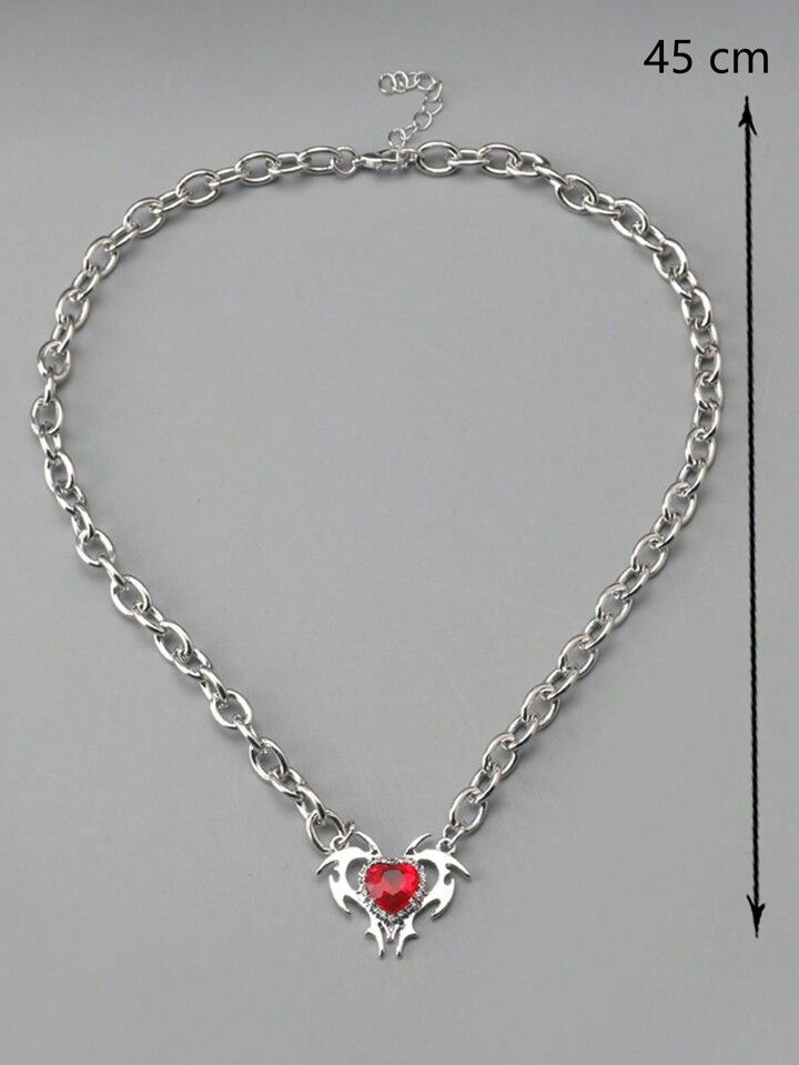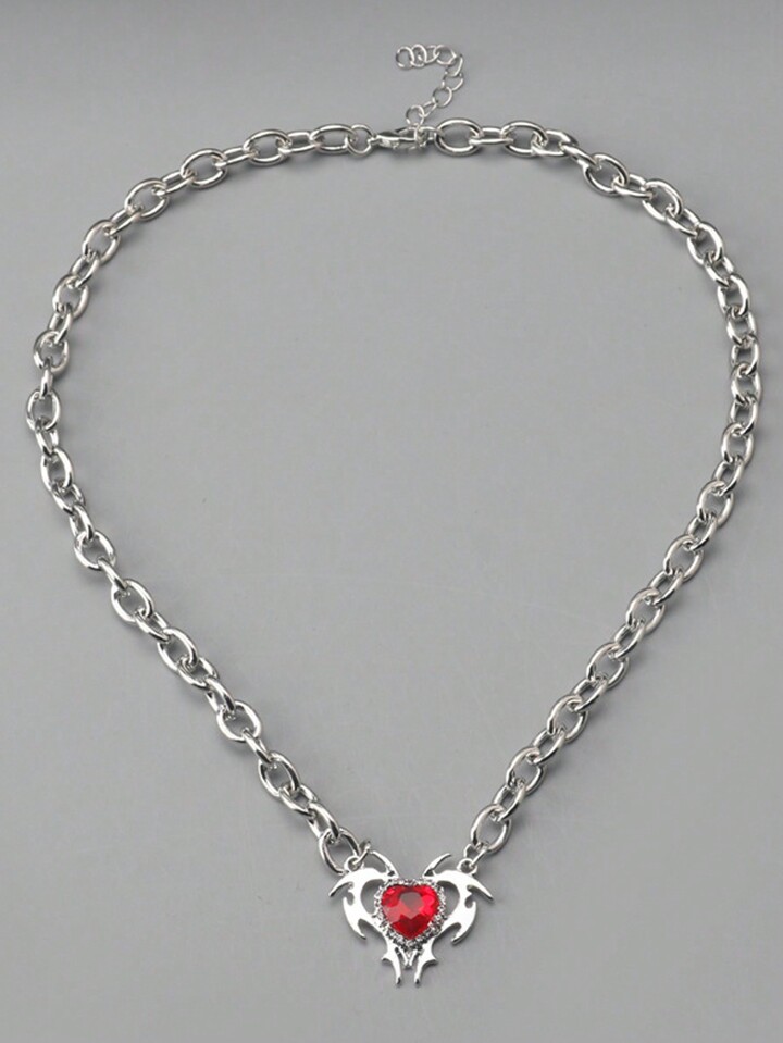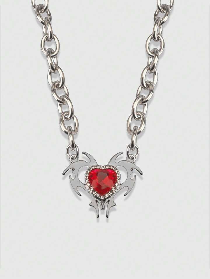 Goth 1pc Red Heart Shaped Pendant Necklace