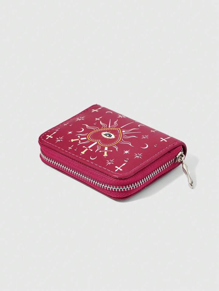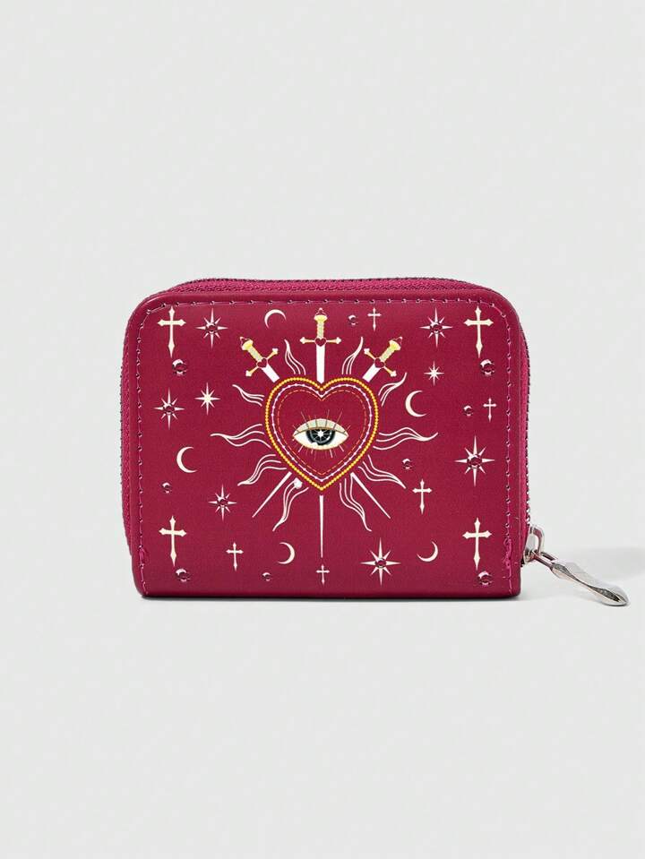 Goth 1pc Red Heart & Sun Cross Design Short Wallet