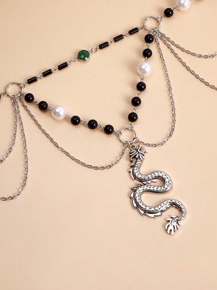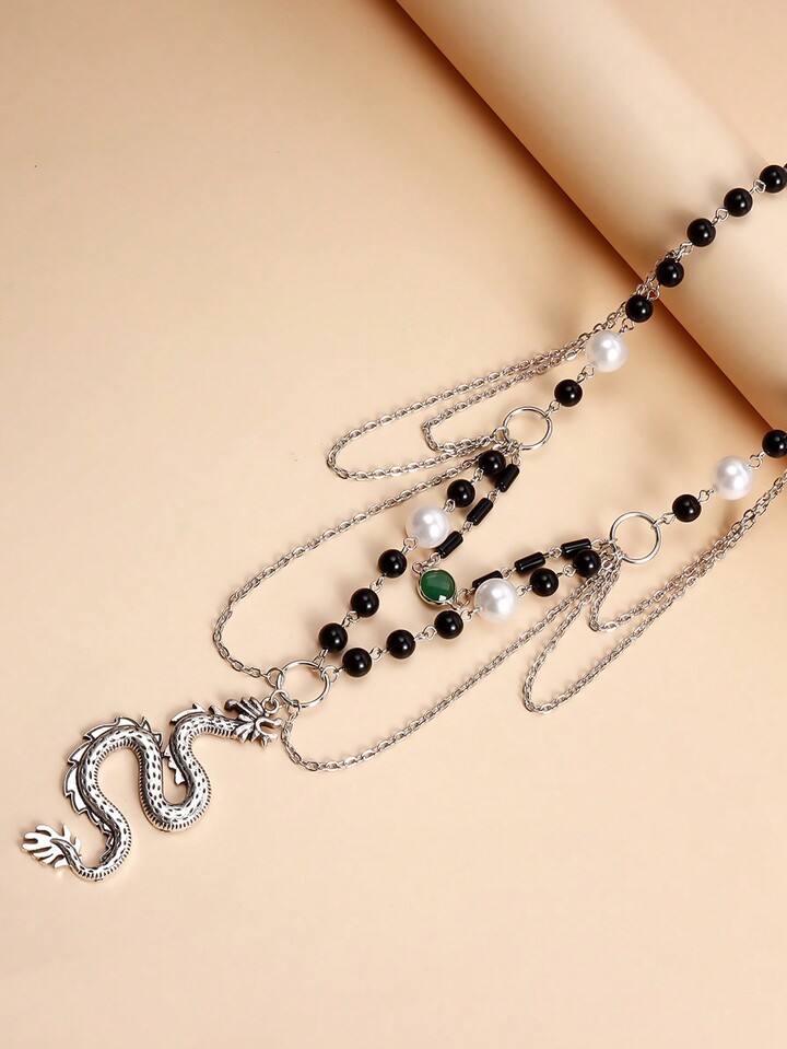 Goth 1pc Retro Dragon Shaped Sweater Chain Necklace For Women