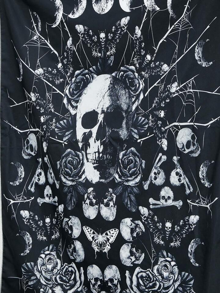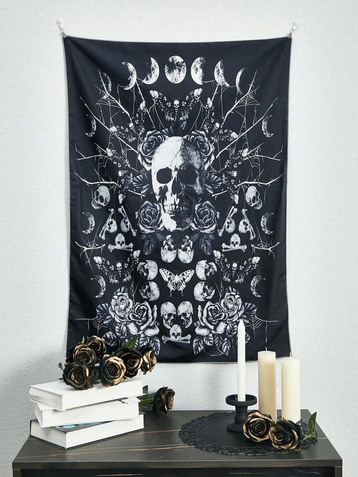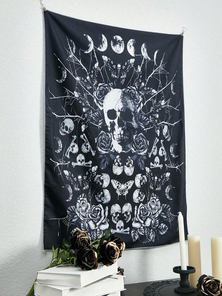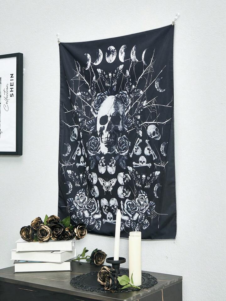 Goth 1pc Skull & Floral Pattern Tapestry,Funky Woven Fabric Tapestry Poster Wall Hanging For Bedroom Aesthetic
