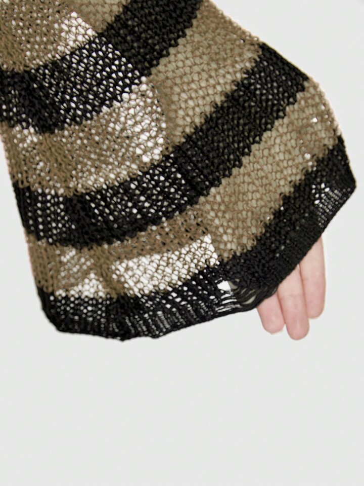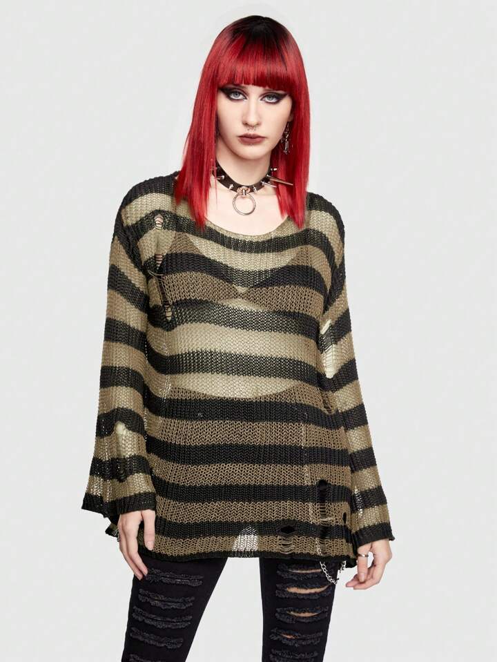 Goth 1pc Striped Pattern Flare Sleeve Ripped Sweater Dress