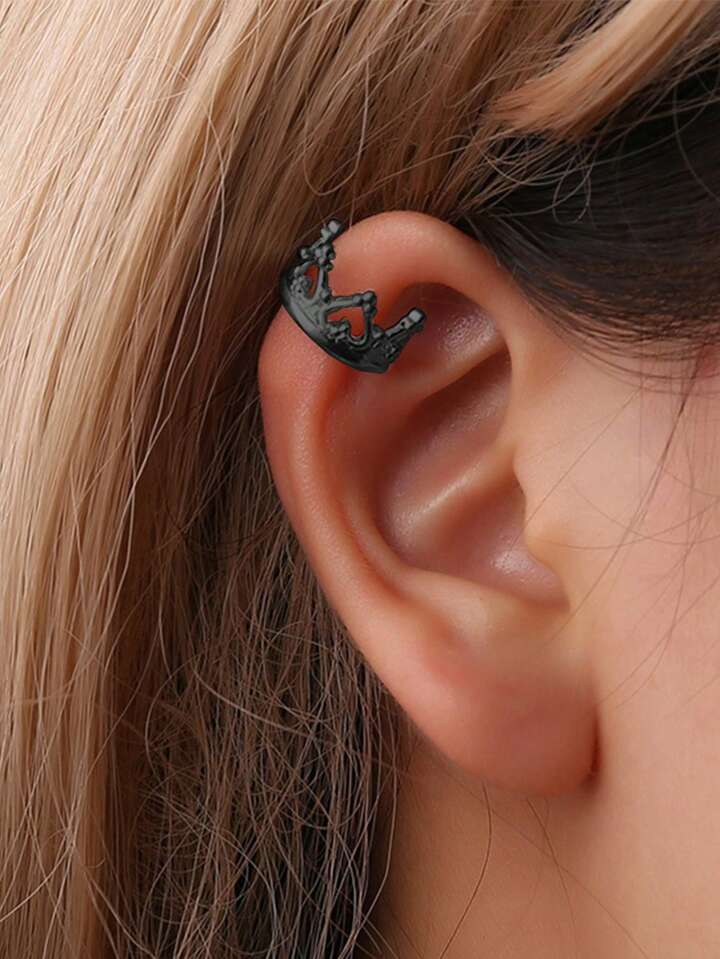 Goth 1pc Sweet & Cool Style Black Crown Shaped Ear Clip