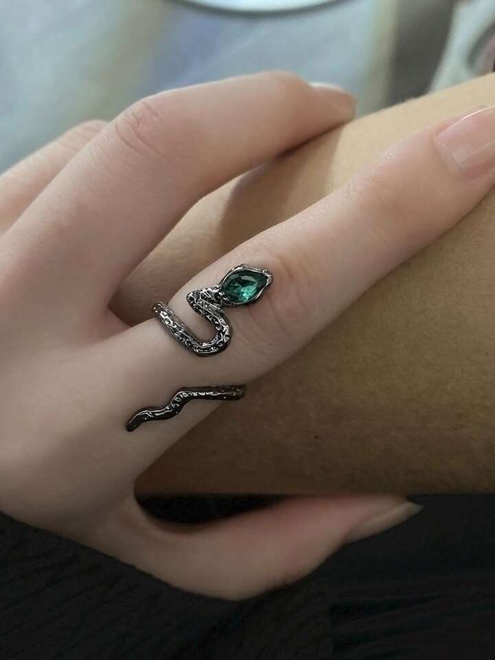 Goth 1pc Vintage Zinc Alloy Rhinestone Decor Snake Design Wrap Ring For Women For Daily Decoration