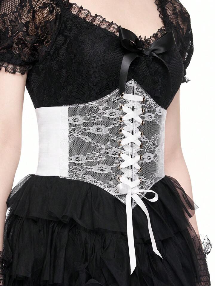Goth 1pc White PVC Lace Decor Elastic Waist Belt, Hexagon Waist Cincher Accessory Dress, Versatile For Everyday Wear