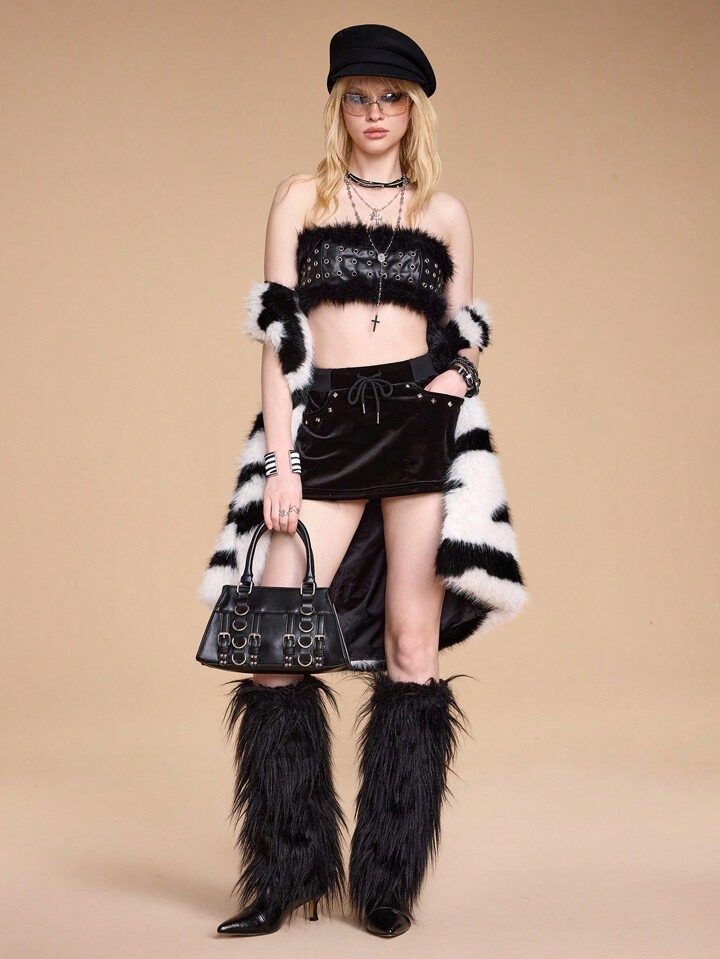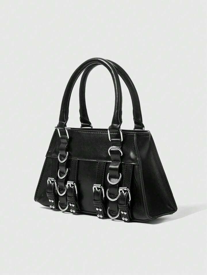 Goth 1pc Women Punk Style Black Shoulder Bag/Handbag With Rivet And Metal Buckle Decor, Suitable For Daily Wear And Travel