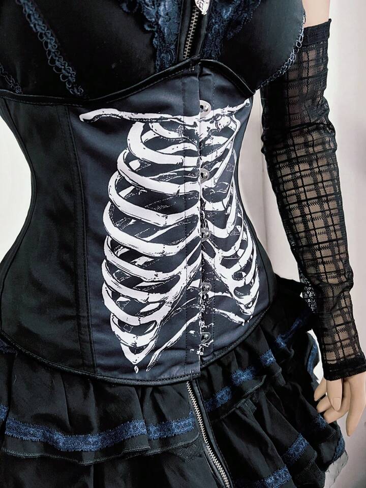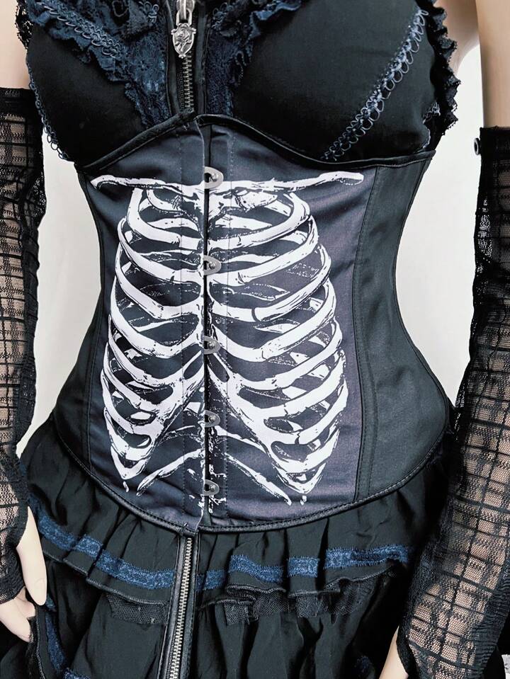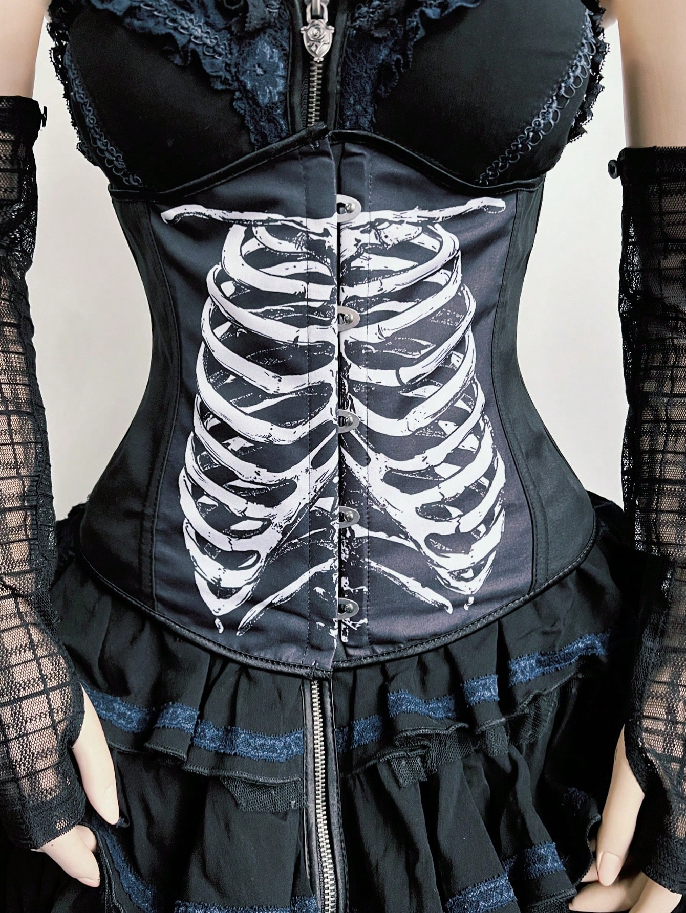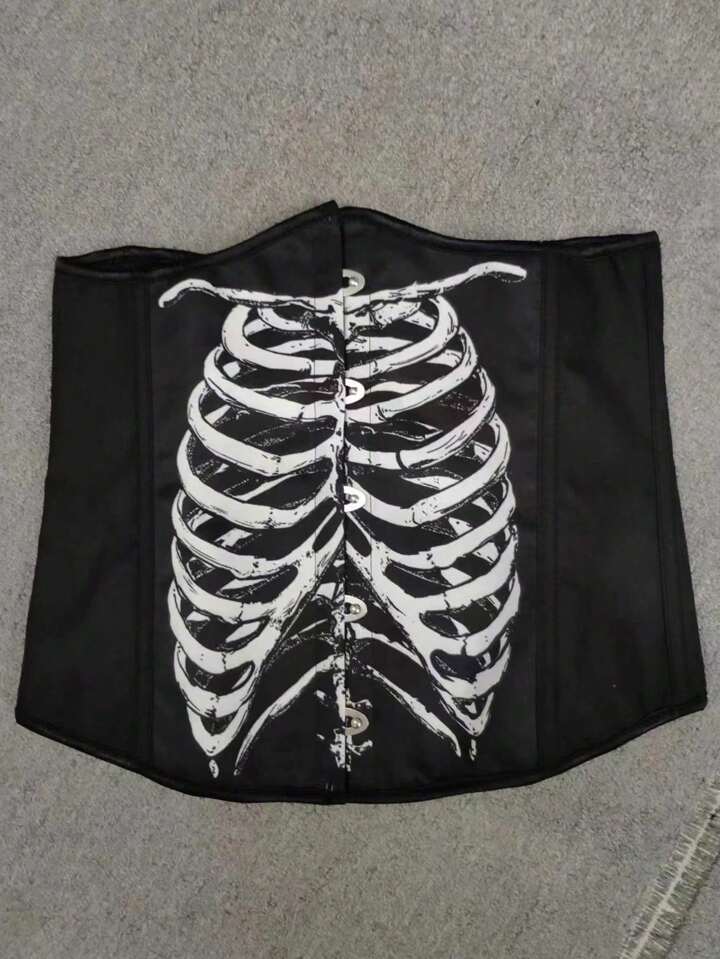 Goth 1pc Women's Black Skeleton Print Waist Cincher For Daily Wear Styling