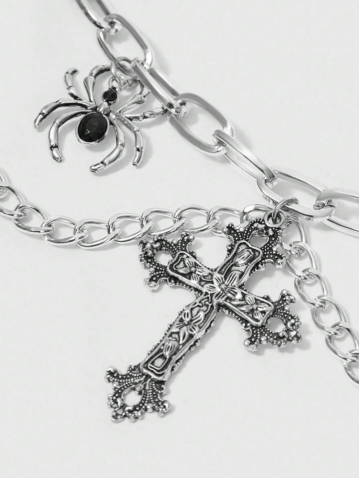 Goth 1pc Women's Silver Rhinestone Spider Cross Chain Decor Waist Chain, Dark Grunge Style For Dresses, Jeans, Halloween Accessory