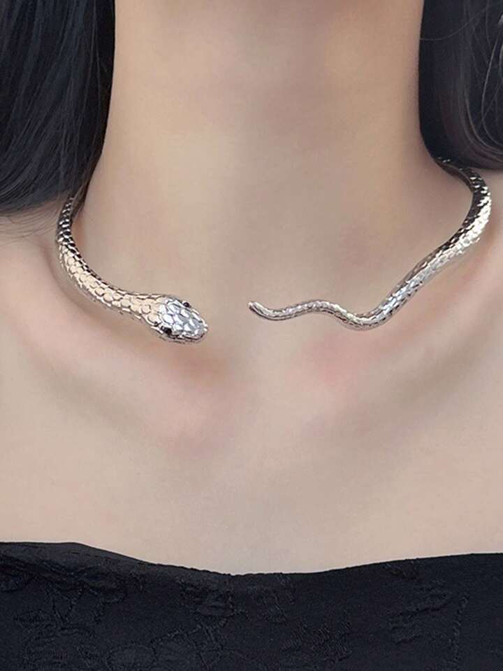 Goth 1pc Women's Snake Collar Punk Style Choker Necklace