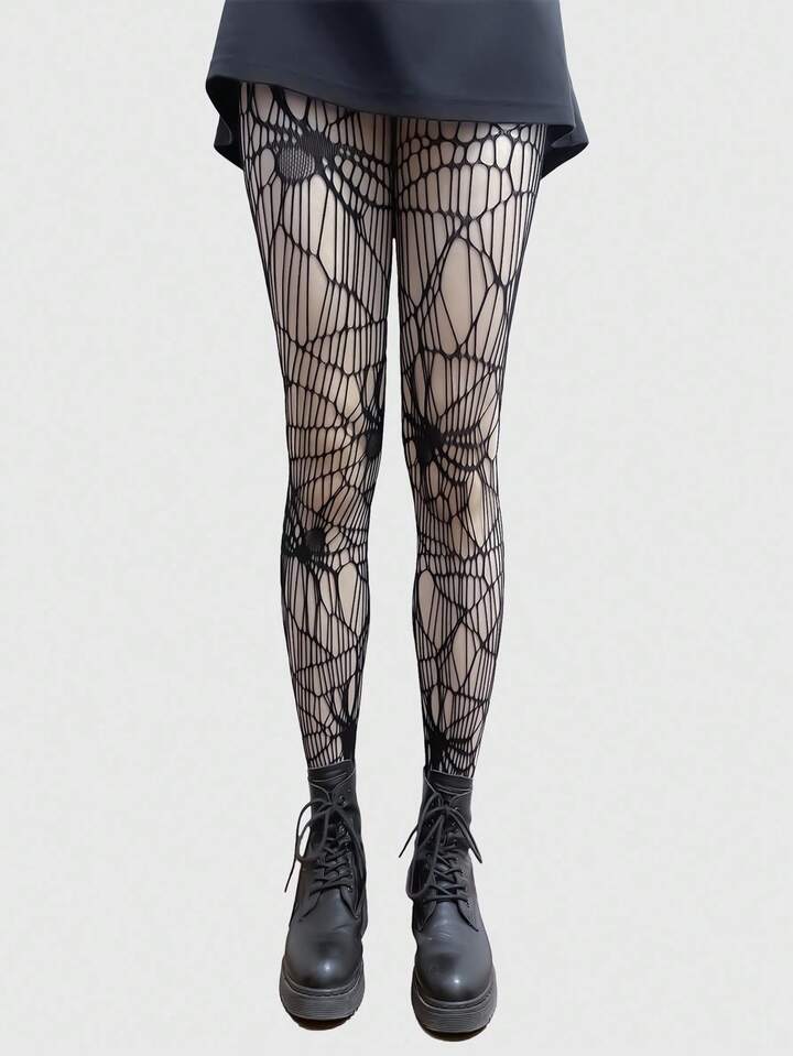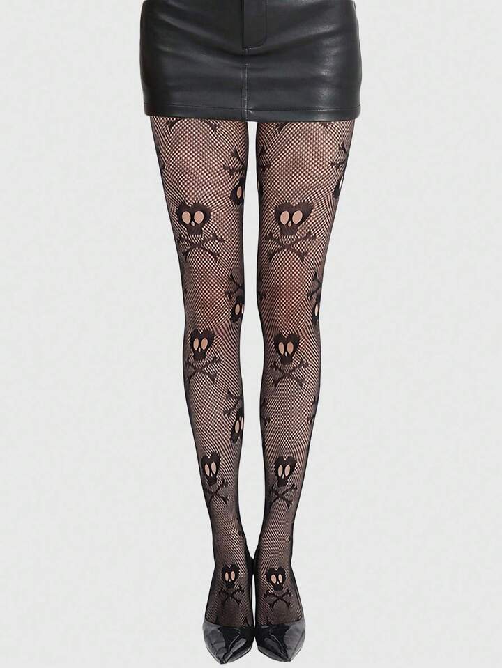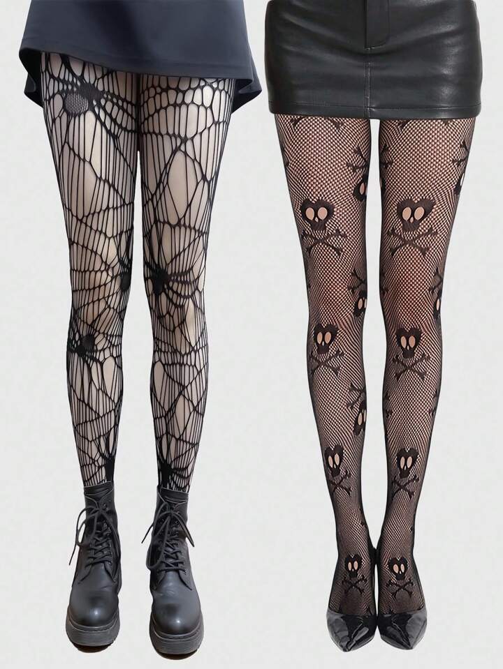 Goth 2 Pairs Spider & Heart Skull Fishnet Tights, Halloween