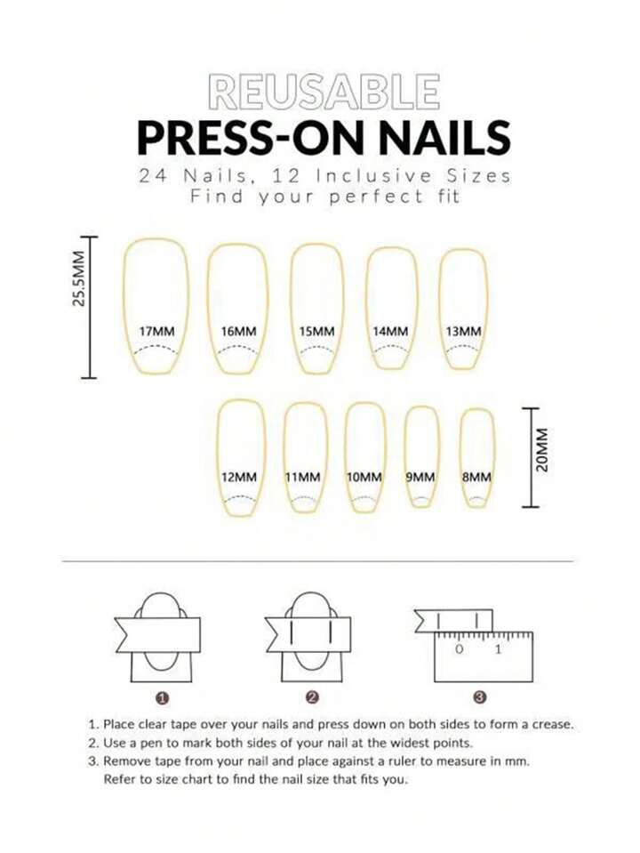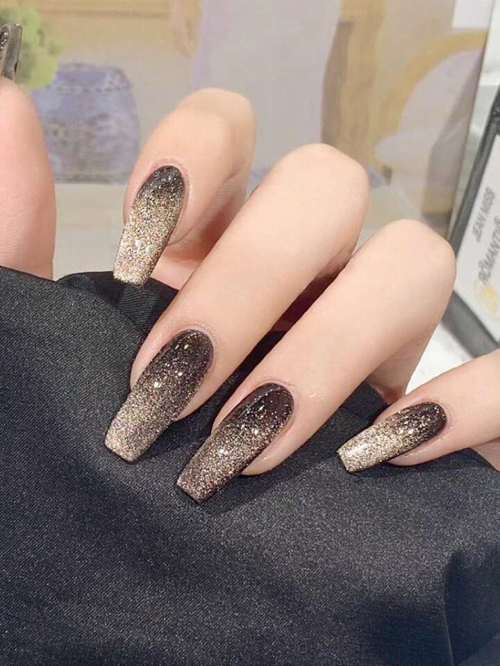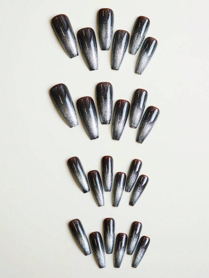 Goth 24pcs Ballet Shaped Full Cover Glitter Manicure
