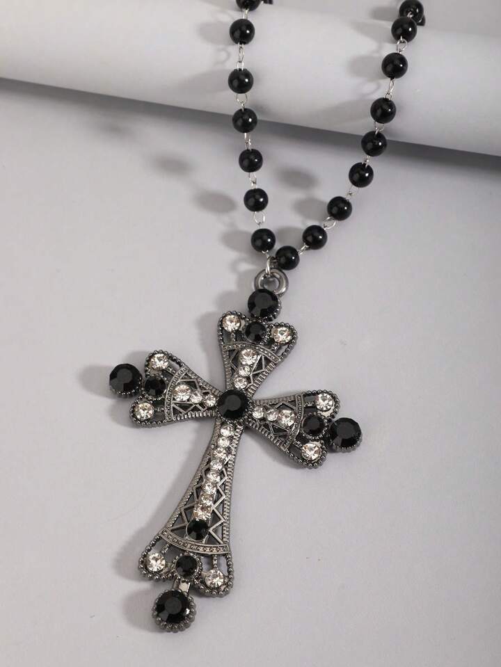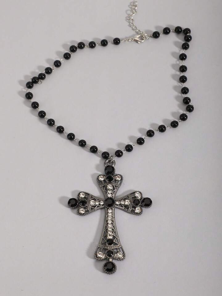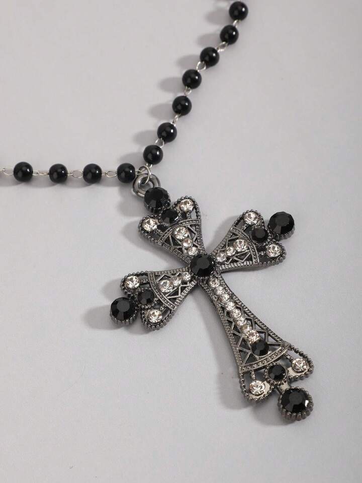 Goth 2pcs Bohemian Style Simple Faux Pearl Hollow Out Five-Pointed Star Charm Collarbone Necklace Set Fashionable Star & Round Beaded Necklaces For Women