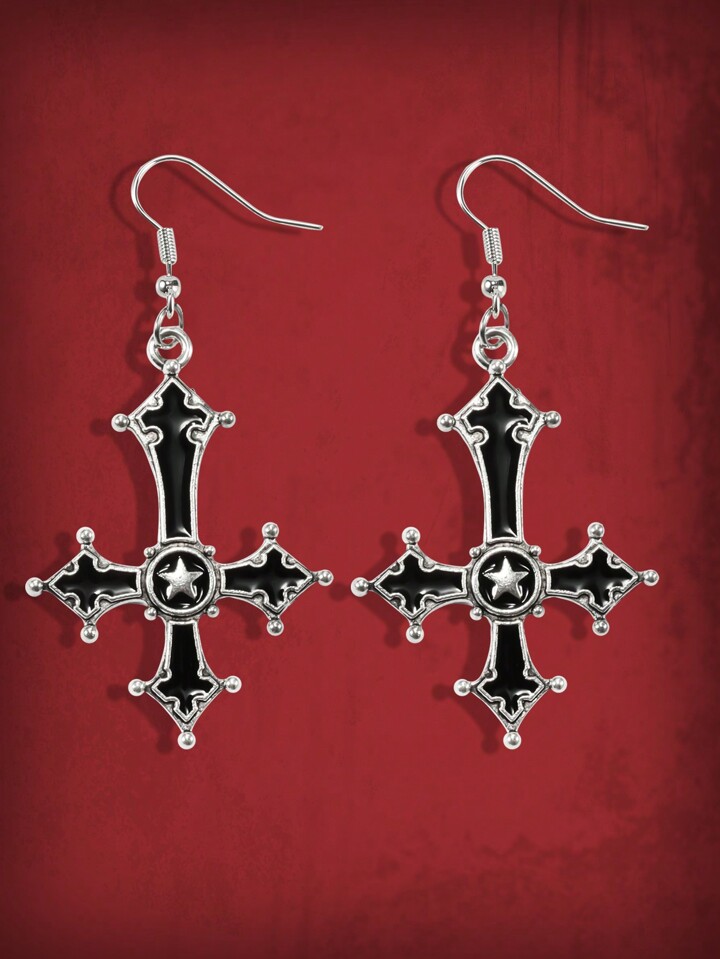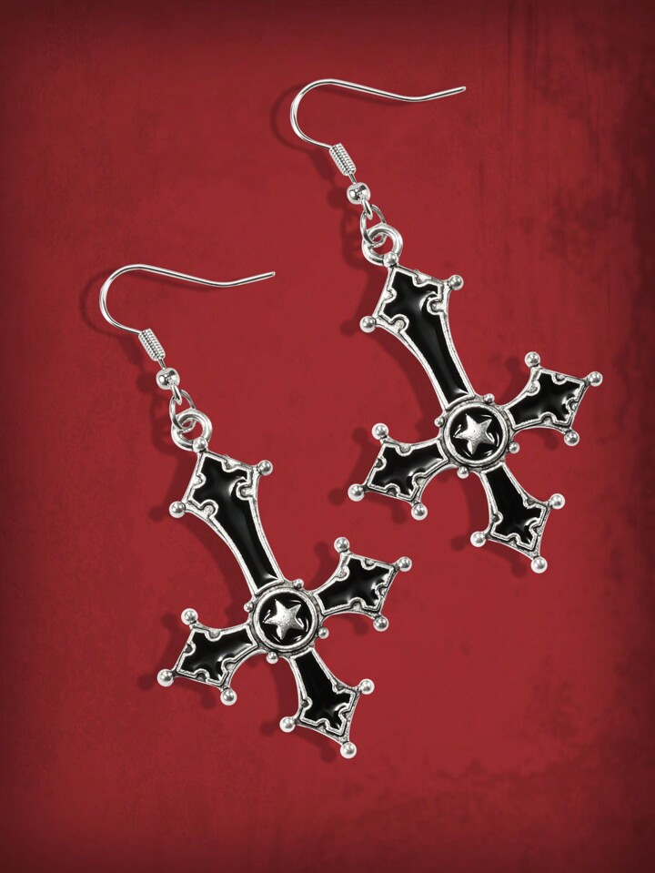 Goth 2pcs Fashion Copper Alloy Cross Drop Earrings For Women For Daily Decoration