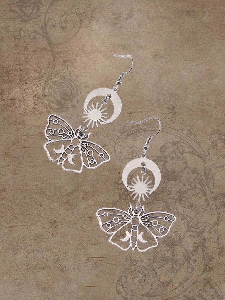 Goth 2pcs Fashion Iron Alloy Butterfly & Moon Drop Earrings For Women For Daily Decoration