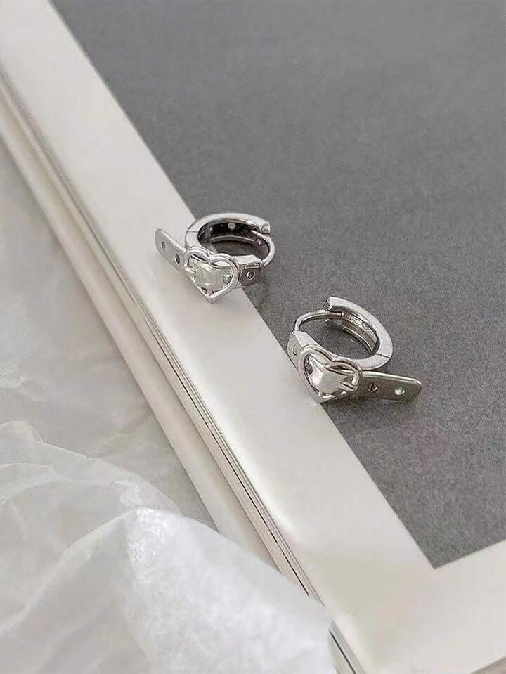 Goth 2pcs Fashion Iron Alloy Heart Decor Hoop Earrings For Women For Daily Decoration