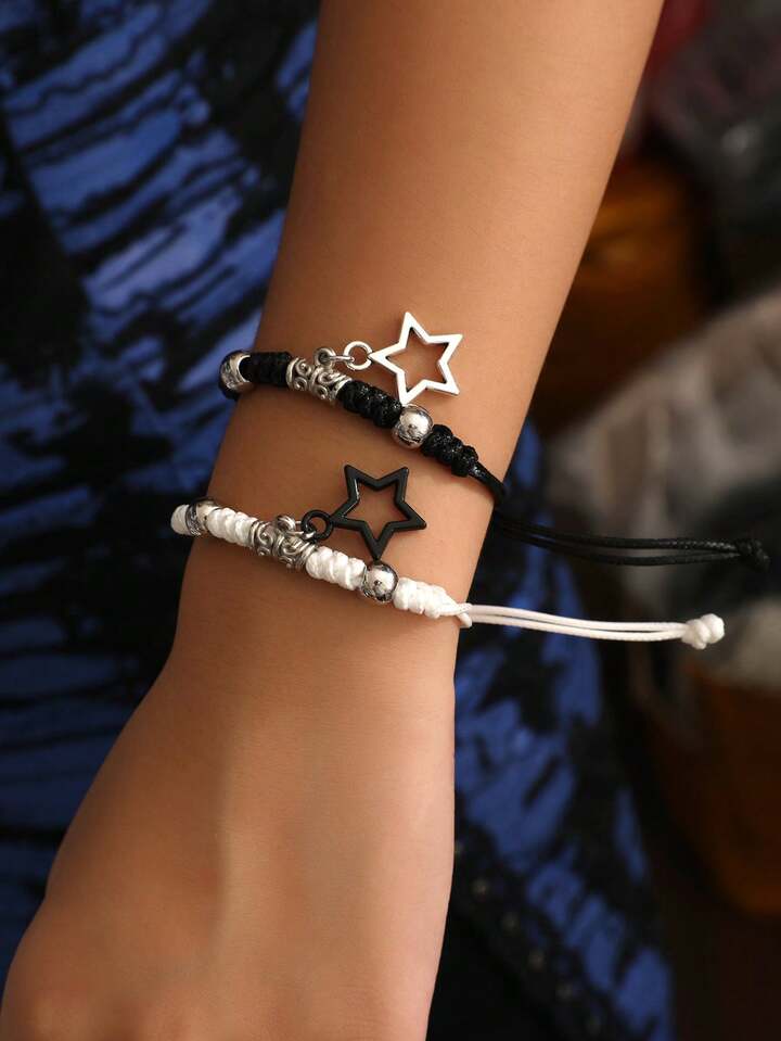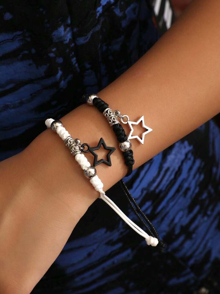 Goth 2pcs Fashion Zinc Alloy Star Charm Bracelet For Women For Daily Decoration