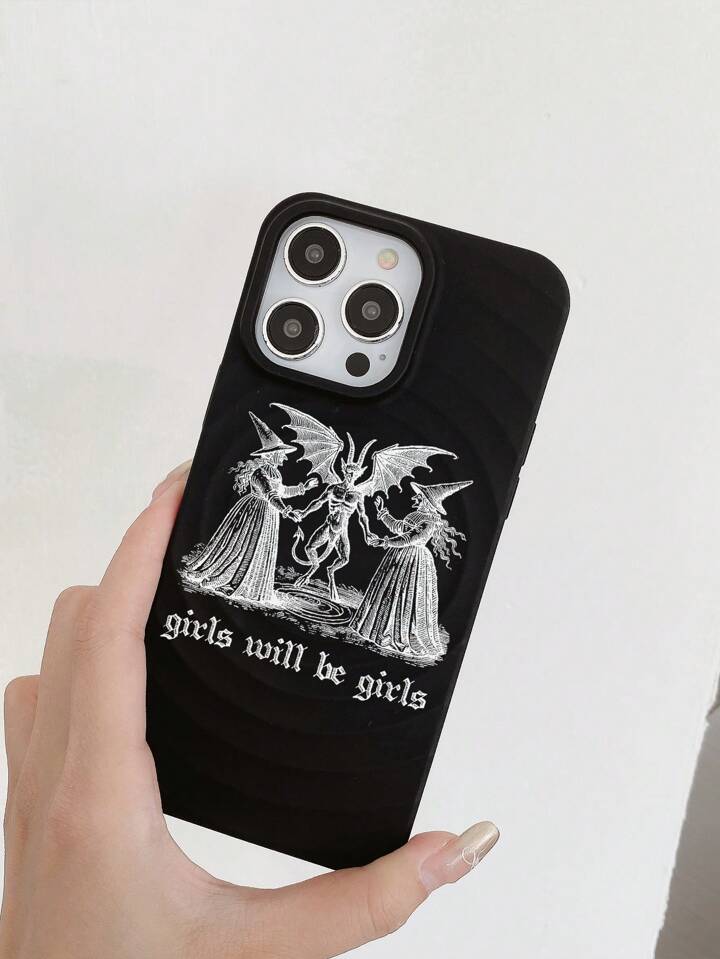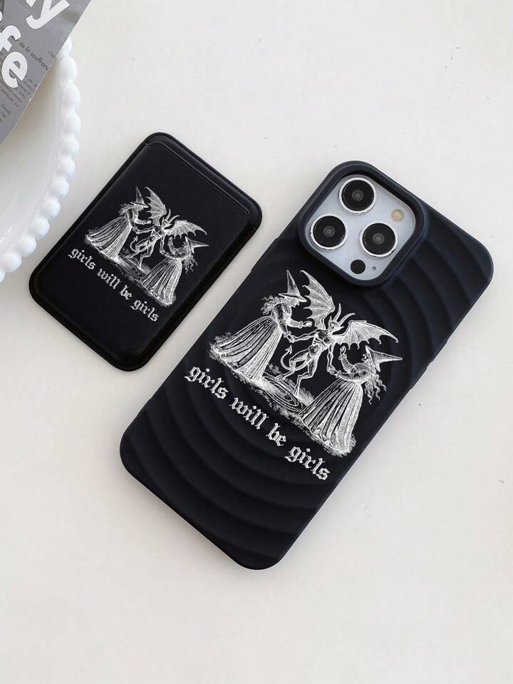 Goth 2pcs/Set Portrait & Letter Printed Magnetic Magsafe Phone Case, Wireless Charging Protective Case With Card Holder, Compatible With Iphone