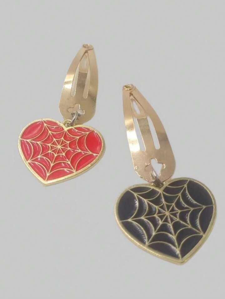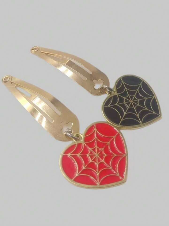 Goth 2pcs Women Spider Web & Heart Decor Hair Clip