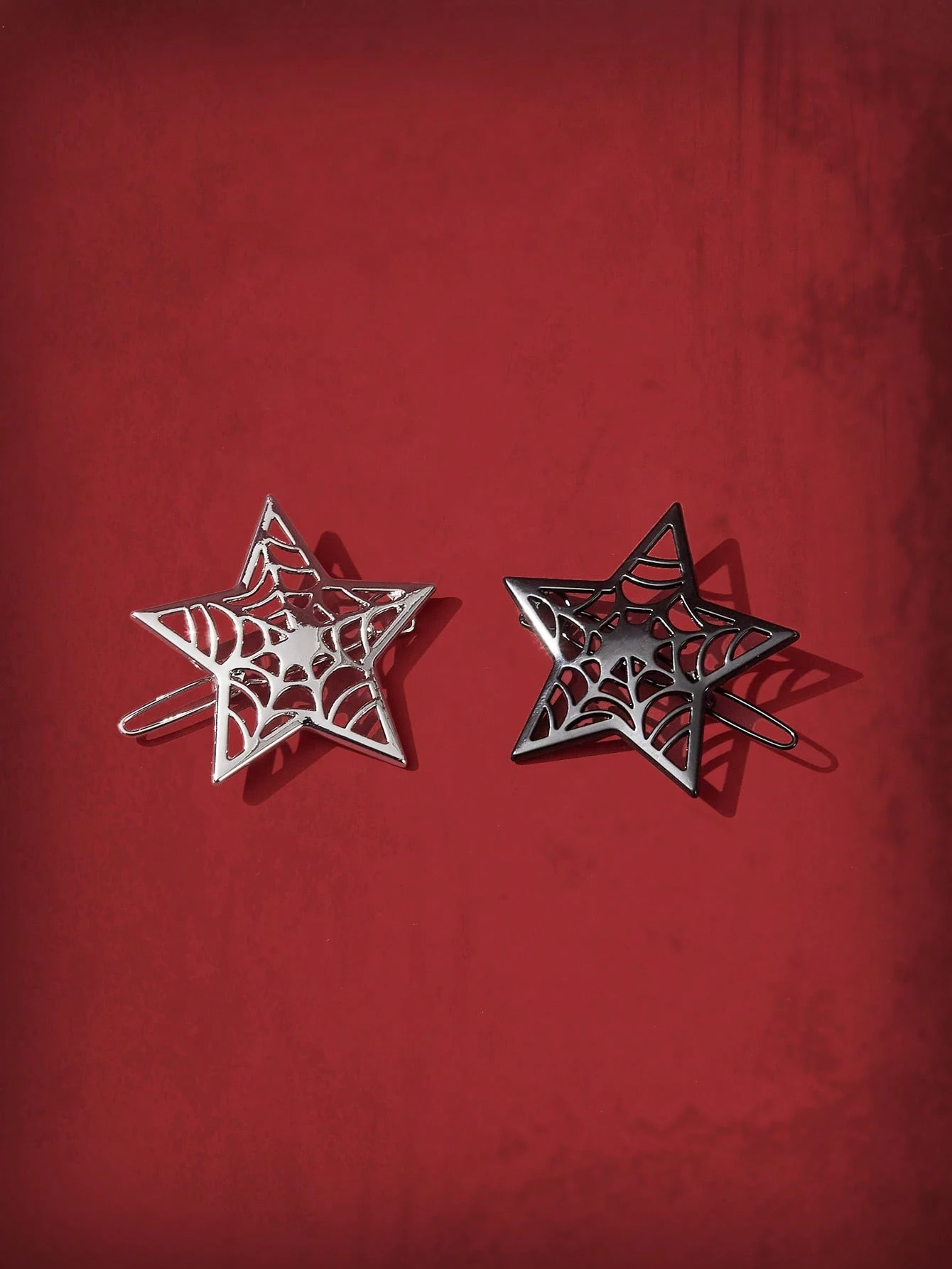 Goth 2pcs Women Spider Web Star Decor Fashion Hair Clip Street