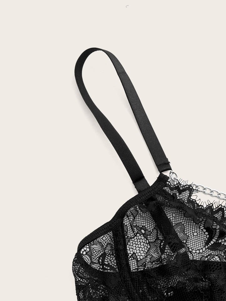 Goth 3pack Floral Lace Chain Decor Garter Lingerie Set