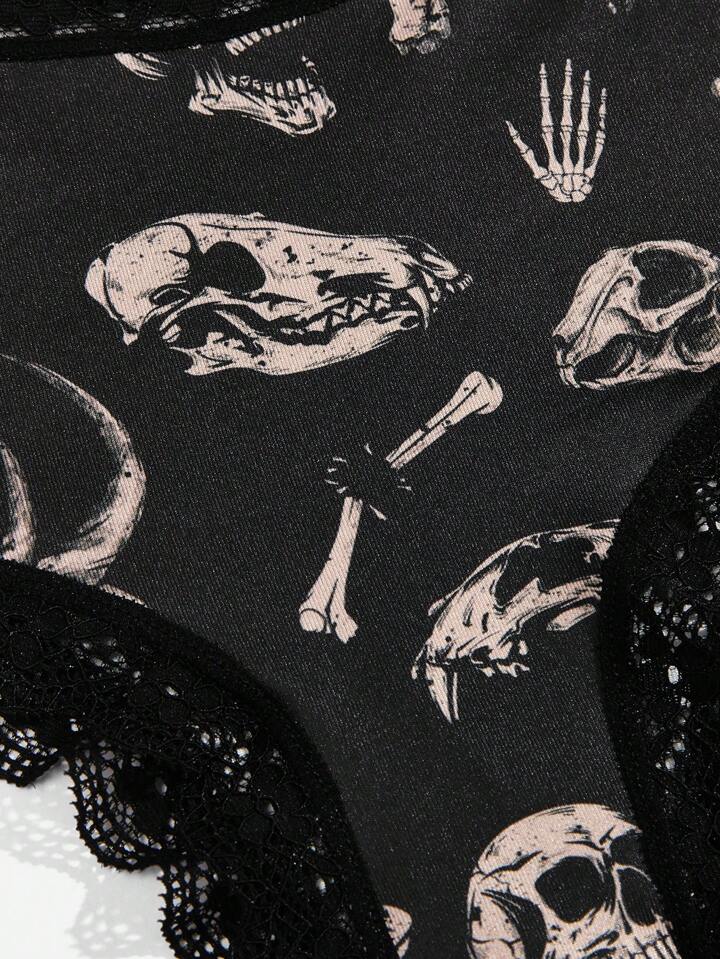 Goth 3pack Skull Graphic Contrast Lace Panty Set