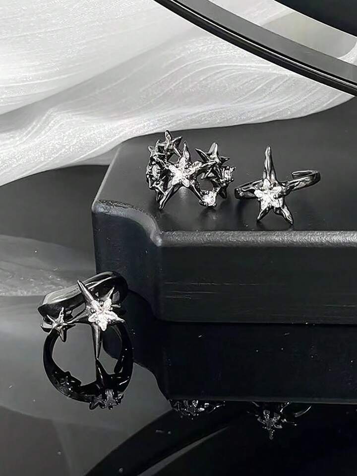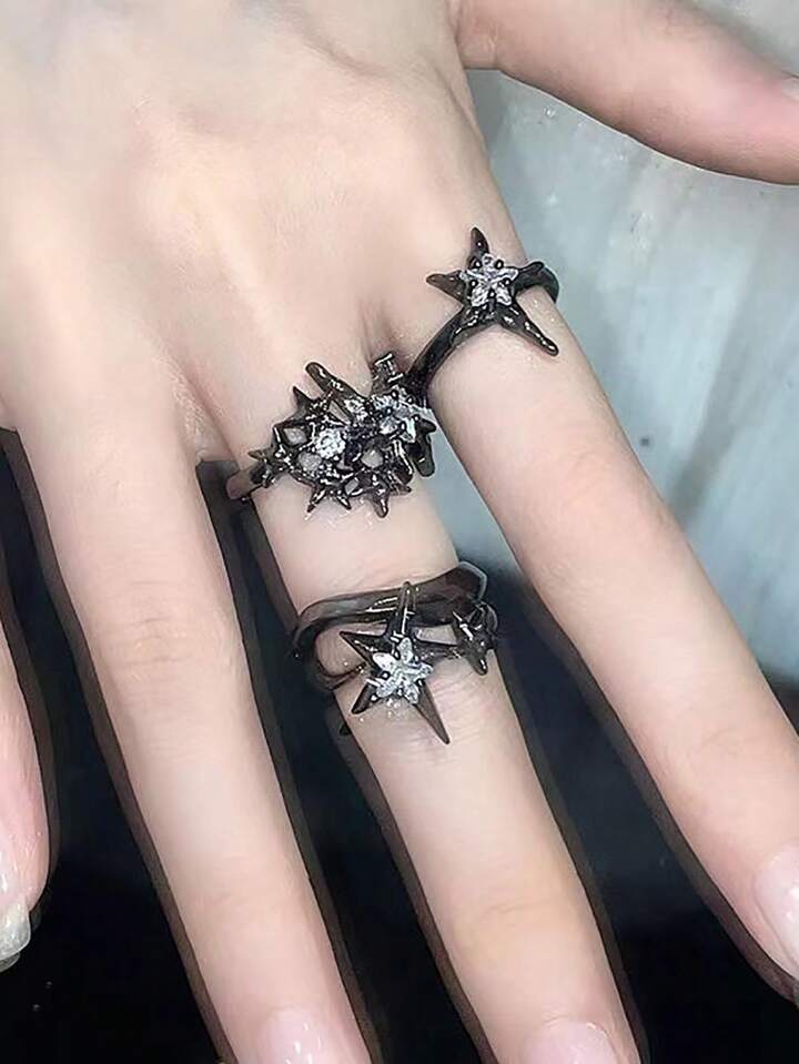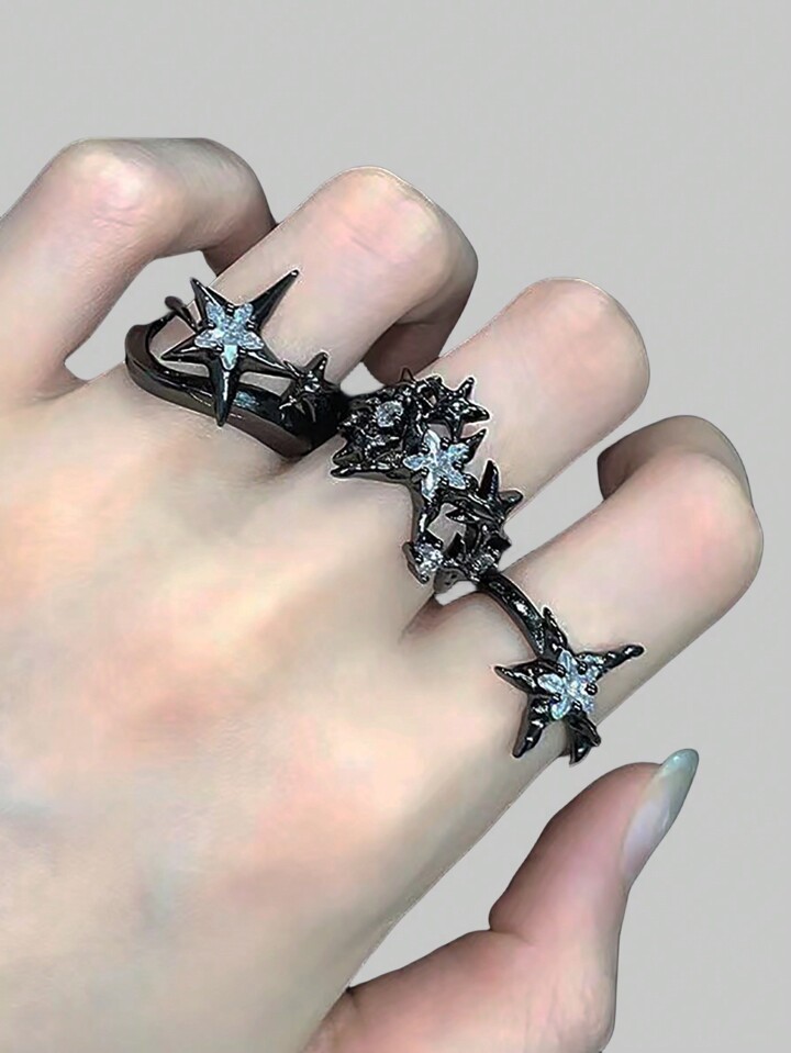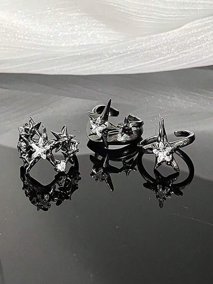 Goth 3pcs Fashion Iron Alloy Rhinestone Star Decor Cuff Ring For Women For Daily Decoration