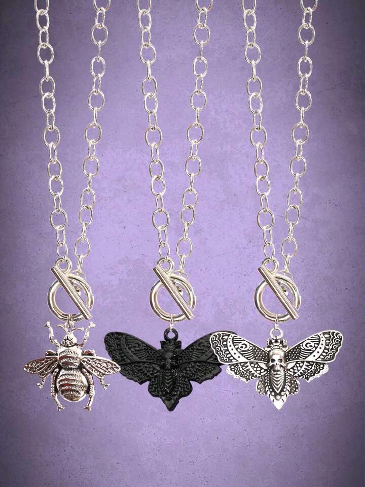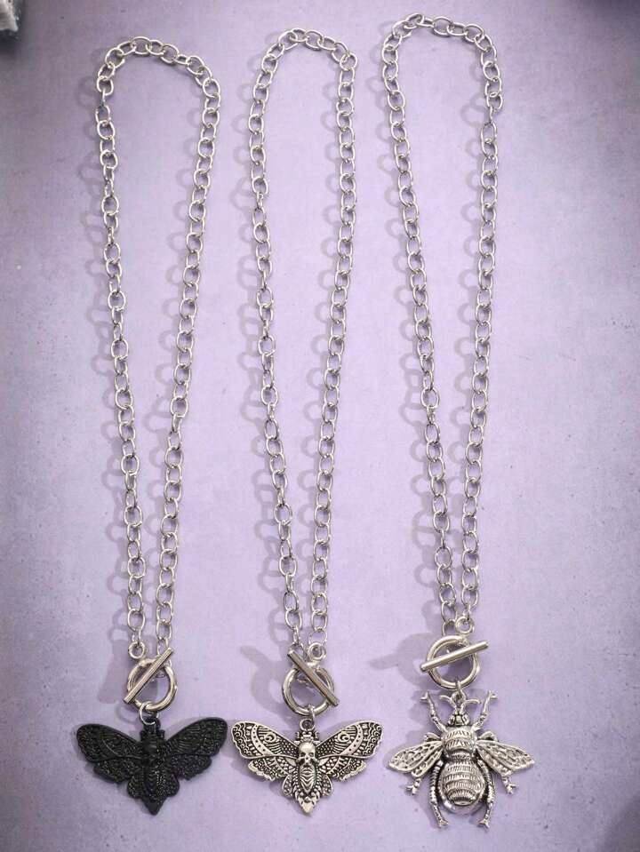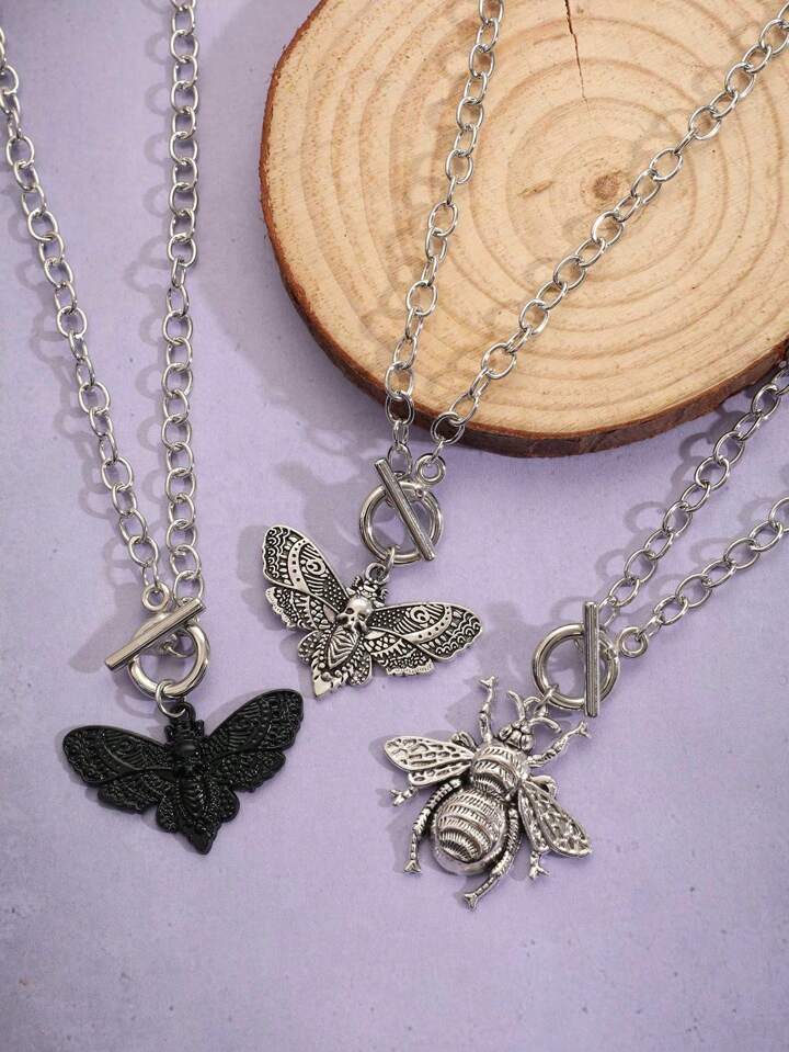 Goth 3pcs Funky Zinc Alloy Bee & Butterfly Charm Necklace For Women For Daily Decoration