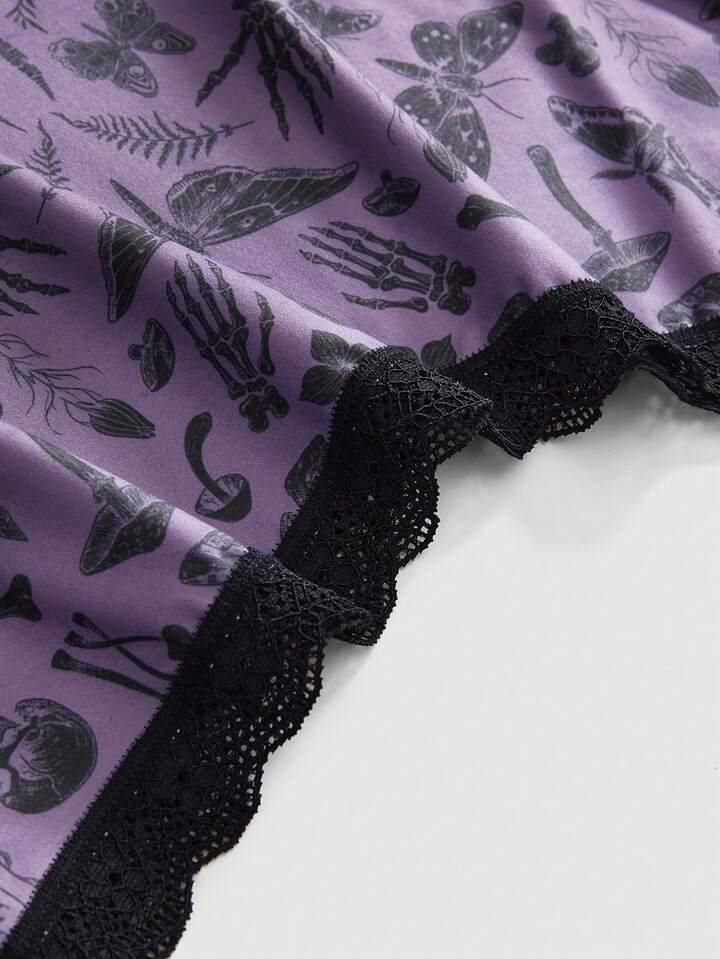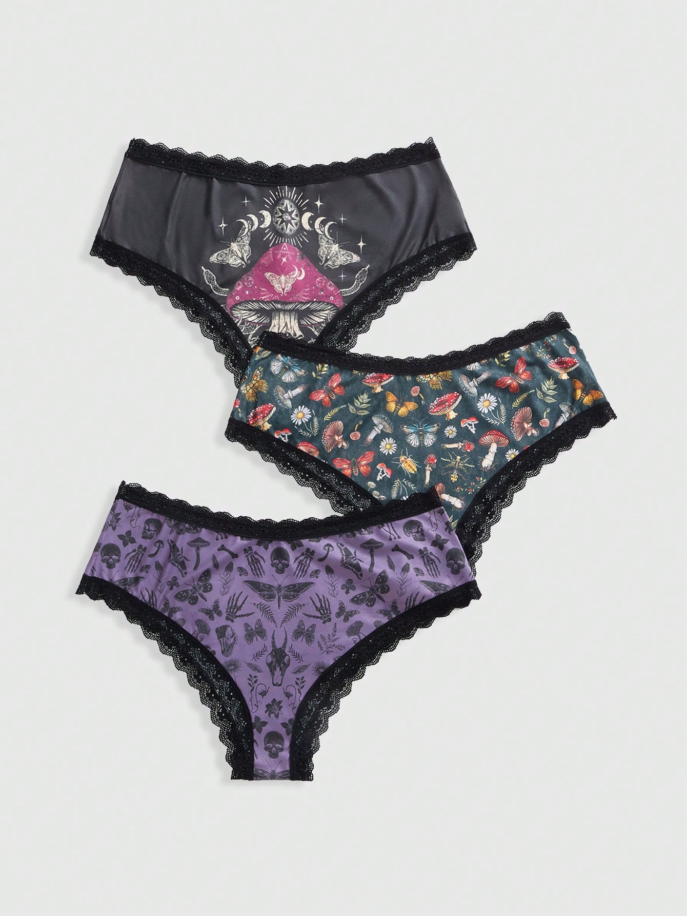 Goth 3pcs/Pack Plus Size Women Contrast Lace Butterfly Print Bikini Briefs