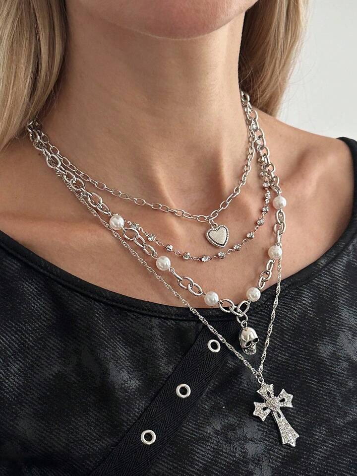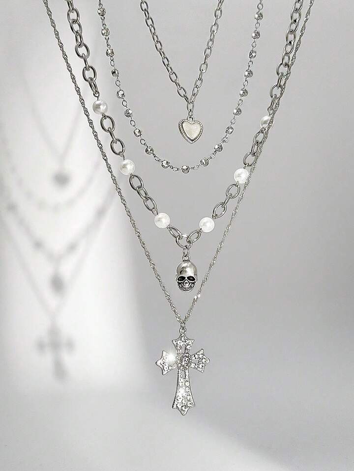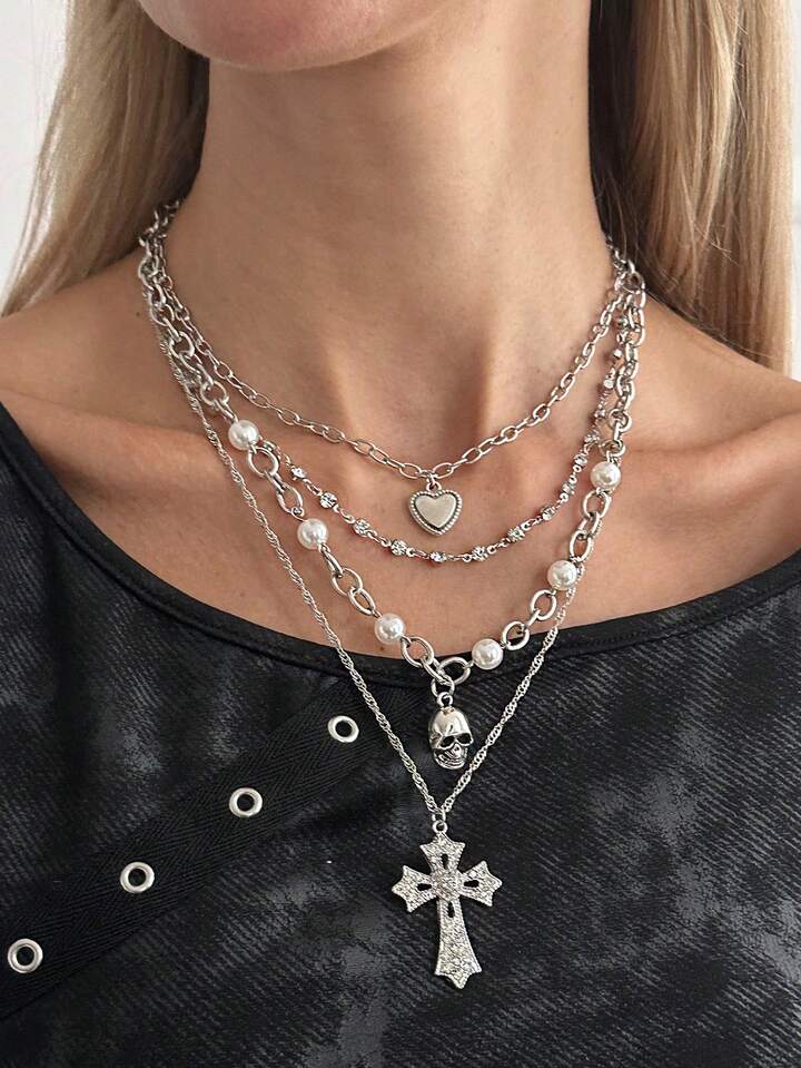 Goth 4pcs/Set Fashionable Punk Style Cross Pendant Necklace Set