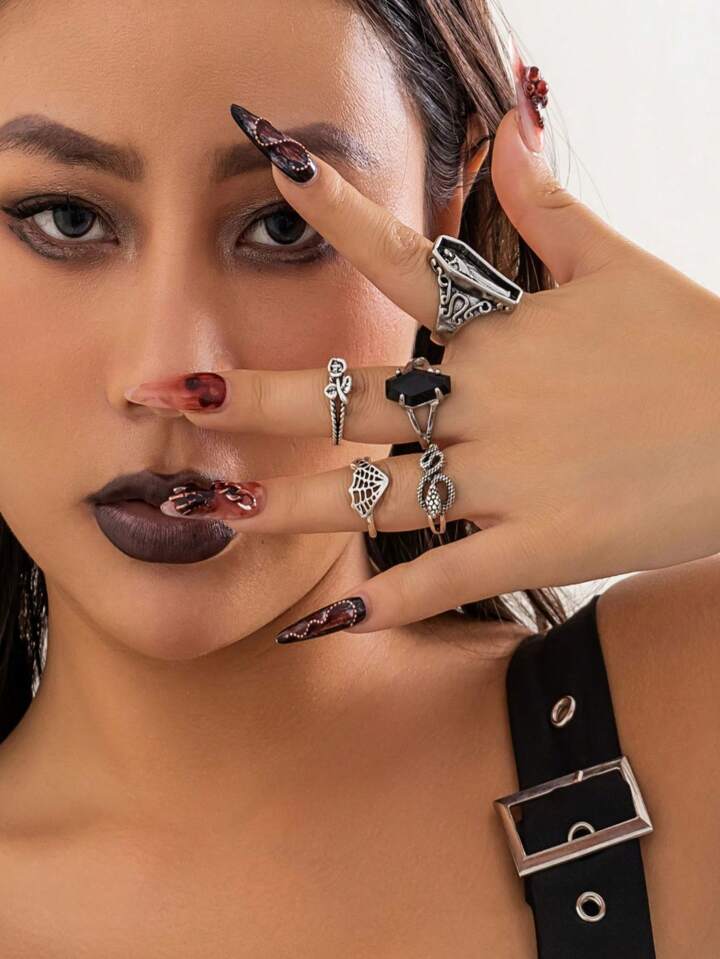 Goth 5pcs Funky Zinc Alloy Snake & Floral Design Ring For Women For Daily Decoration