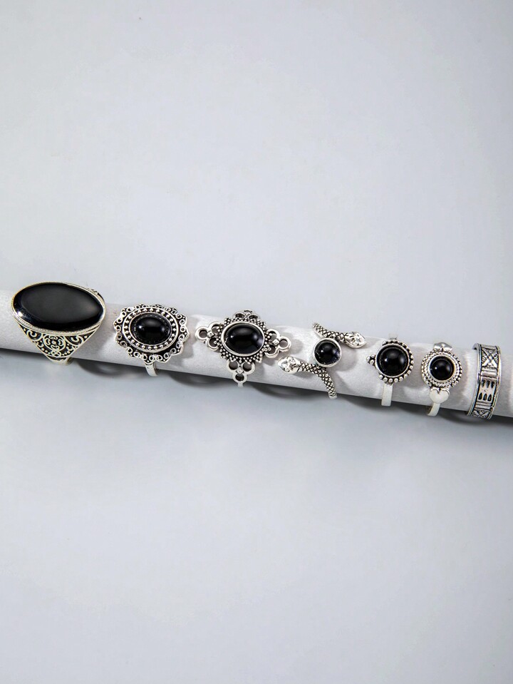 Goth 7pcs Funky Zinc Alloy Oval & Snake Decor Ring For Women For Daily Decoration