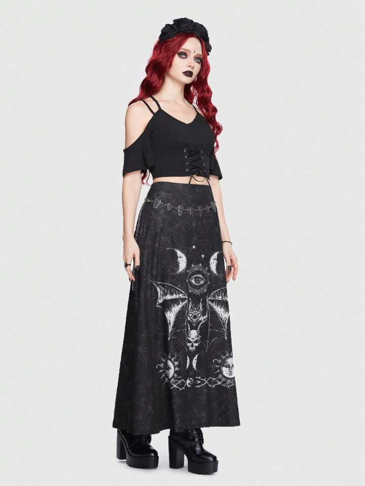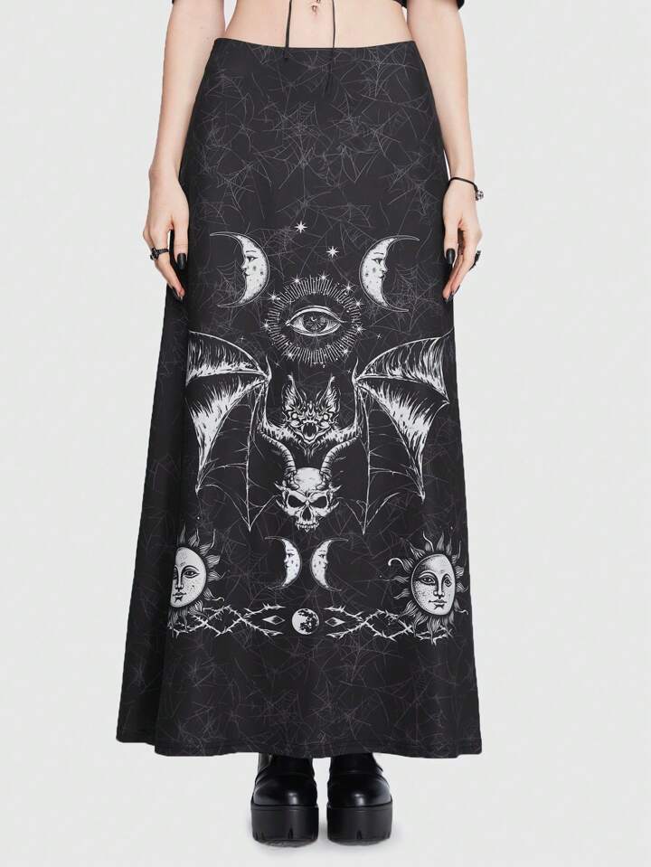 Goth Bat Sun & Moon Print Skirt