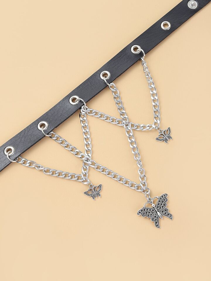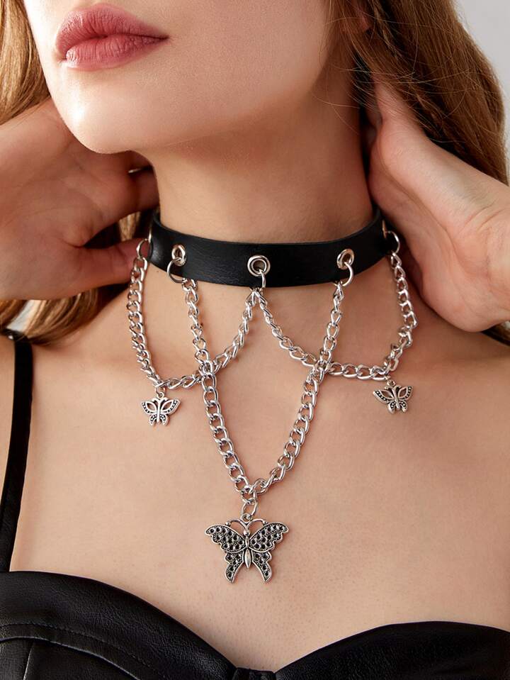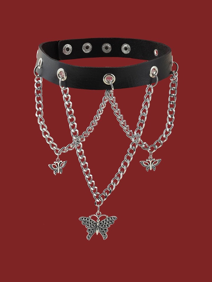 Goth Butterfly & Chain Charm Choker