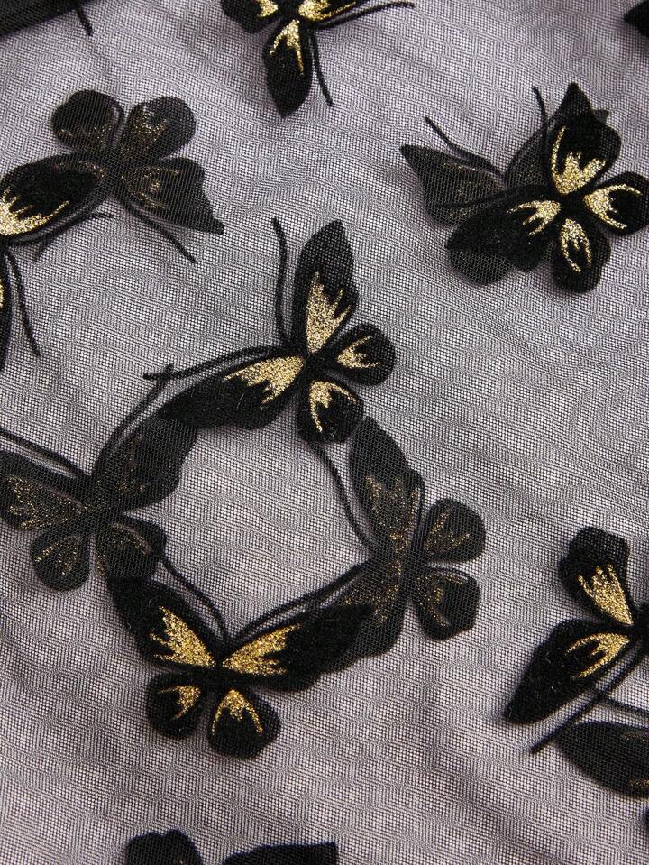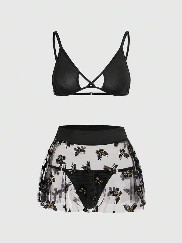 Goth Butterfly Embroidery See-through Mesh Sexy Lingerie Set