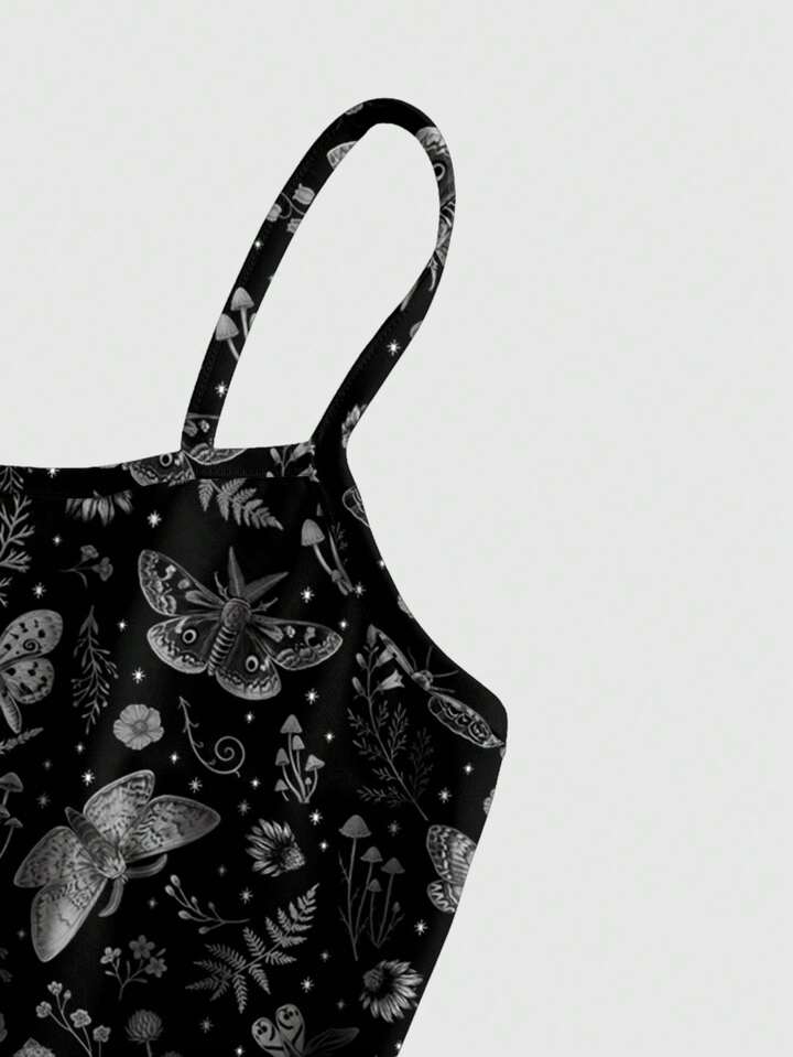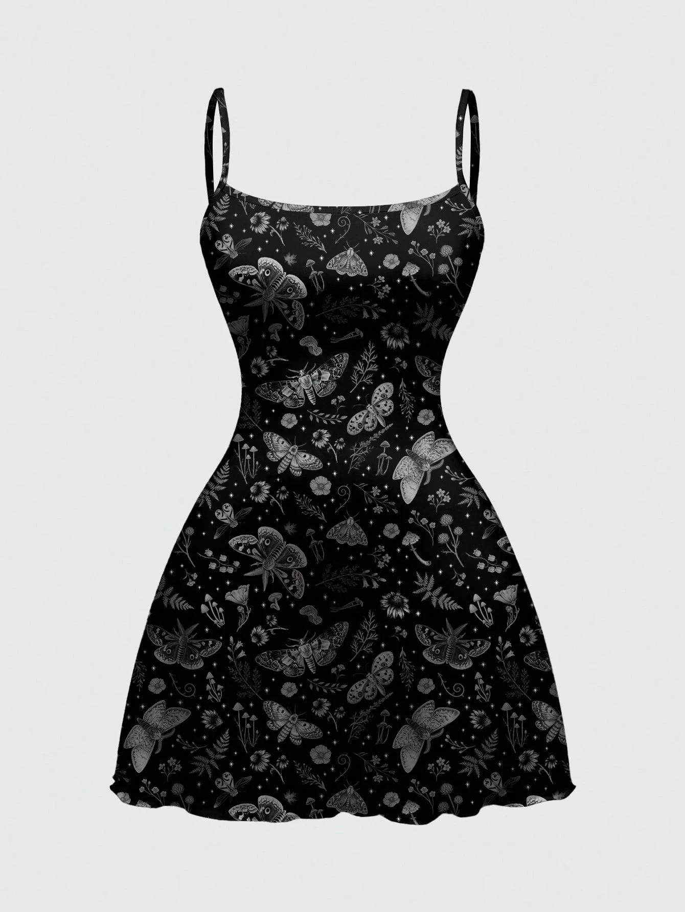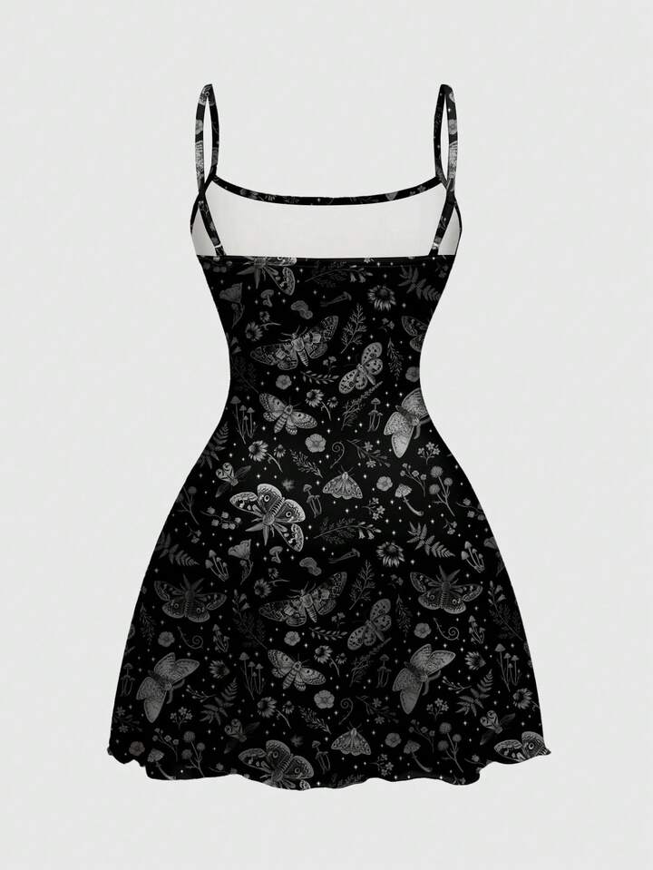 Goth Butterfly Garden Floral Plant Butterfly Dark Allover Print Mini Dress For Women