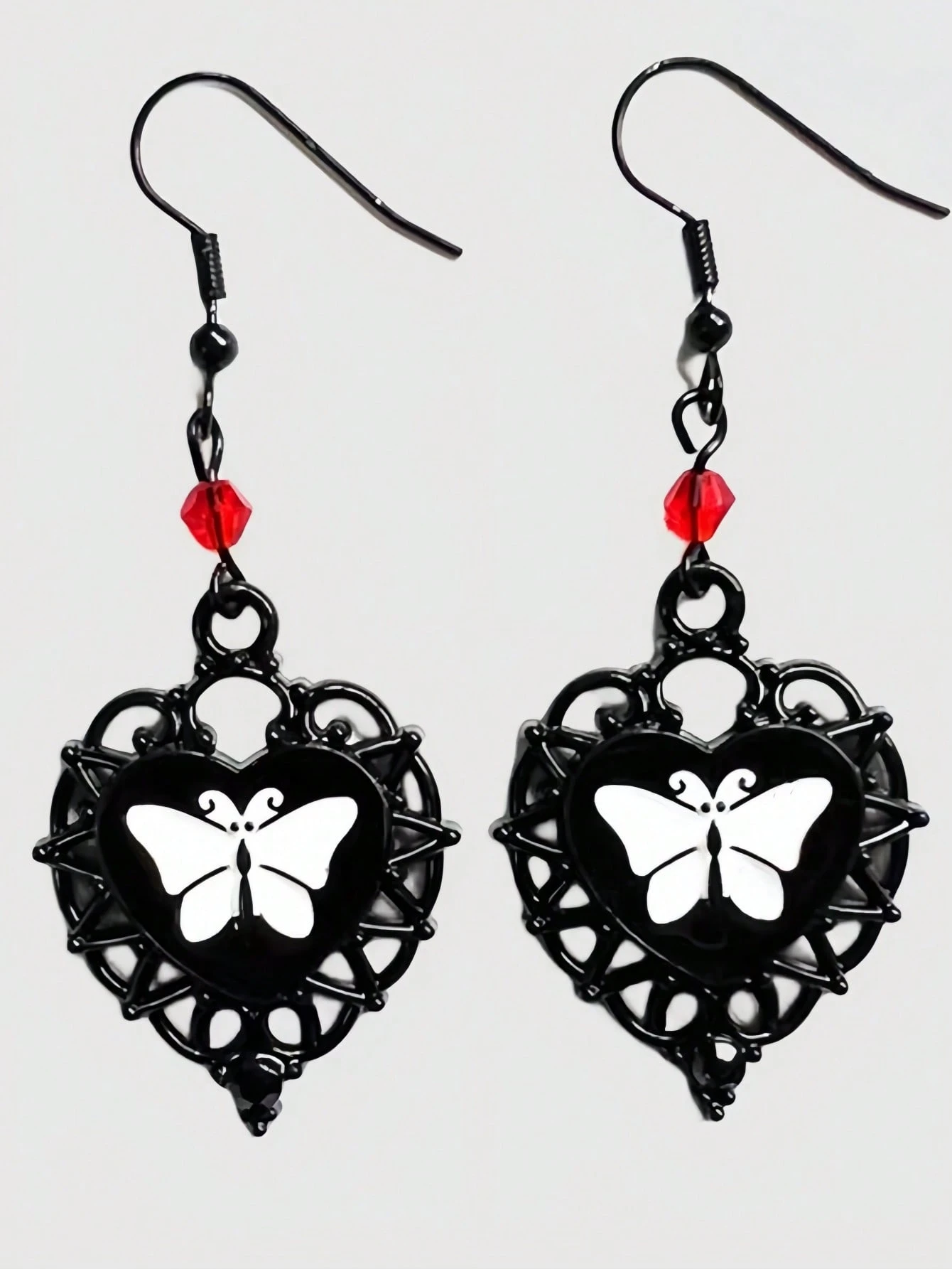 Goth Butterfly & Heart Drop Earrings