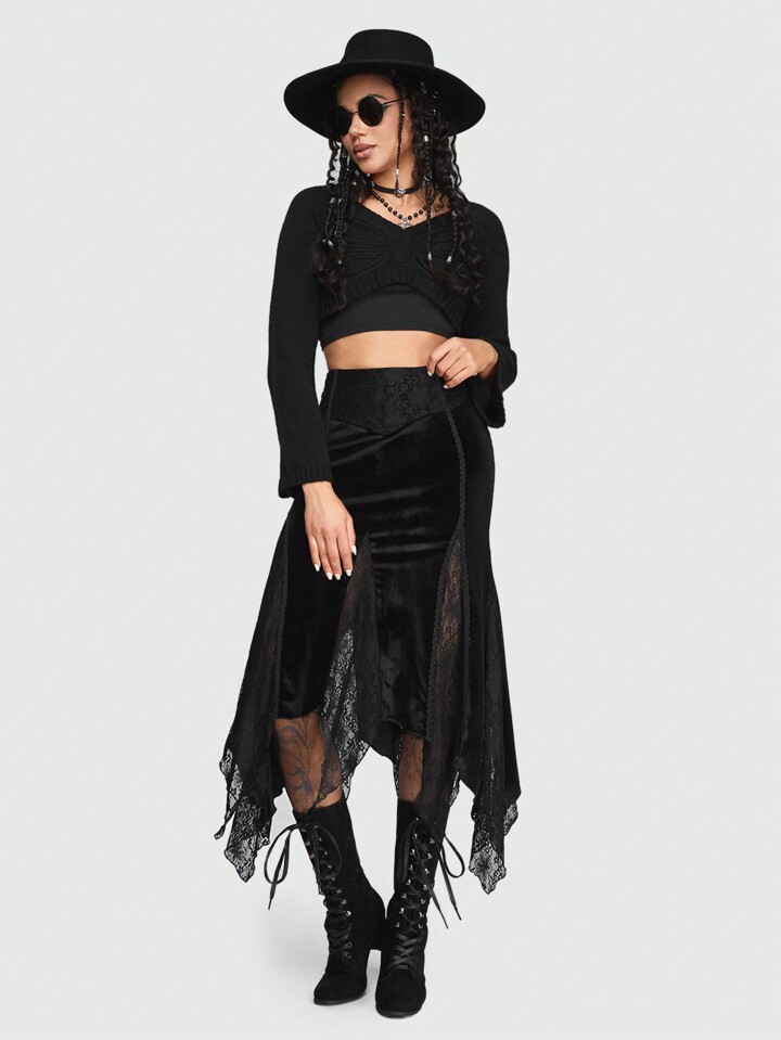 Goth Butterfly Pattern Knitted Sweater With Bell Sleeves, Pullover